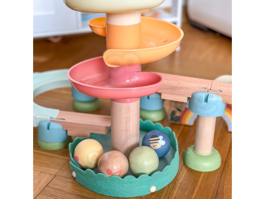- - Farebná guľôčková dráha s mnohými zákrutami, ktoré dieťa uvedú do fascinujúceho sveta pohybu a gravitácie