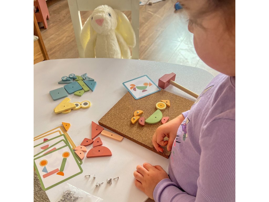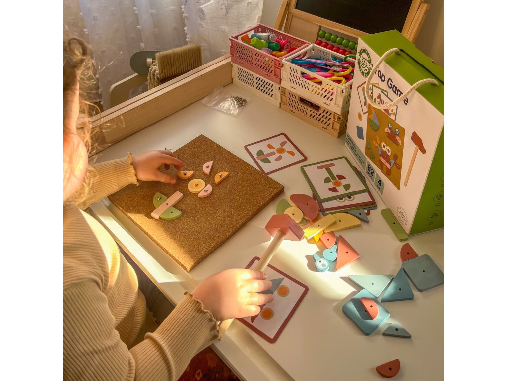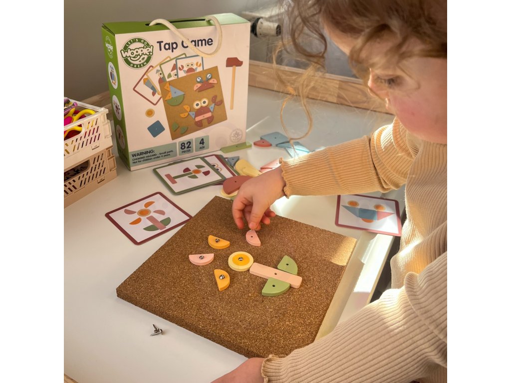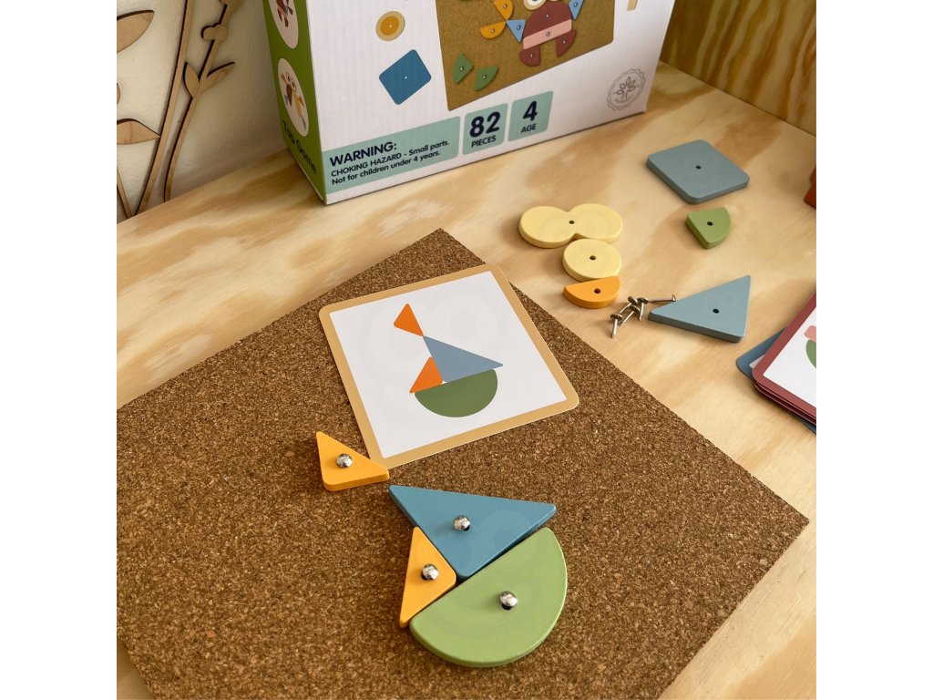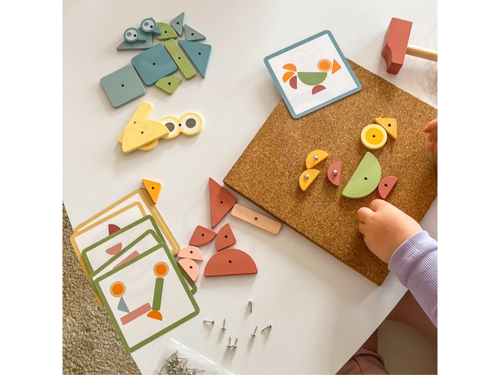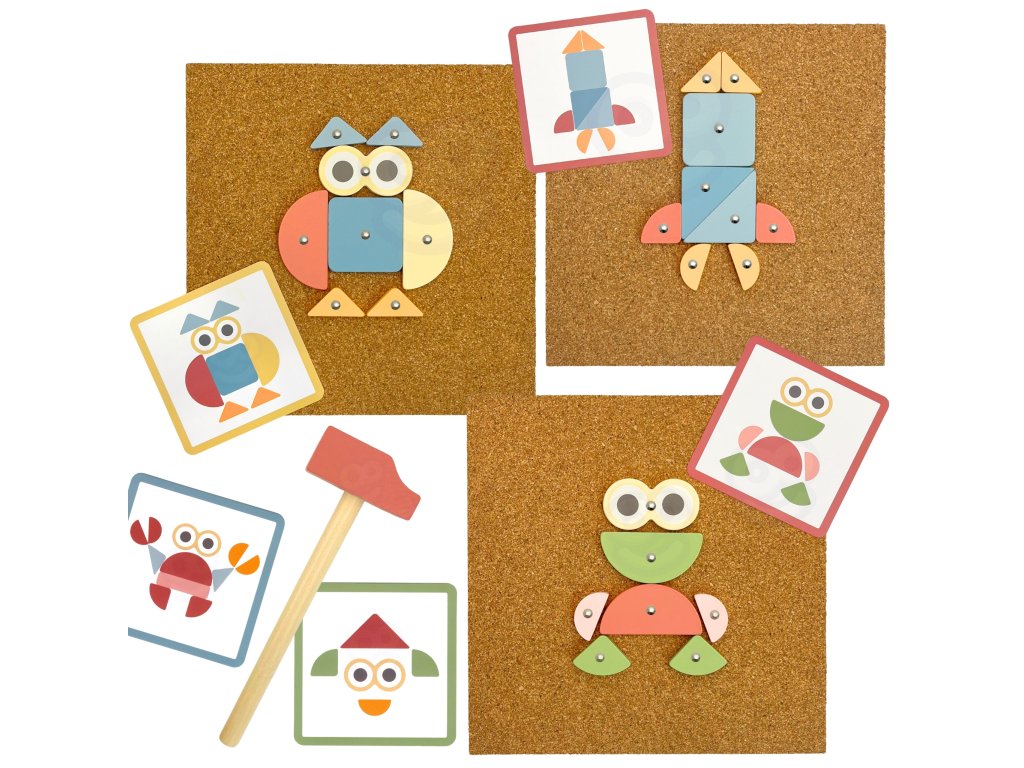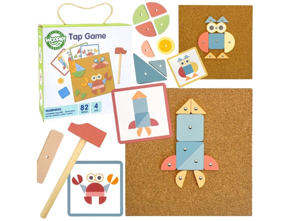 Korková klincovačka od značkyWOOPIE GREEN je to skvelá hračkapre každého malého staviteľa! Súprava umožňuje deťom vytvárať farebné obrázky z kociek, ktoré sú pribité špendlíkmi na korkovú tabuľu. Môžete použiť vopred pripravené vzory alebo...vymyslieť niečo úplne nové! Až do82 položiekvďaka rôznym tvarom a farbám a 3 úrovniam obtiažnosti sa pri hraní nikdy nenudíte. Je to nielen zábava - je to ajtréning koncentrácie, kreativity a logického myslenia!
