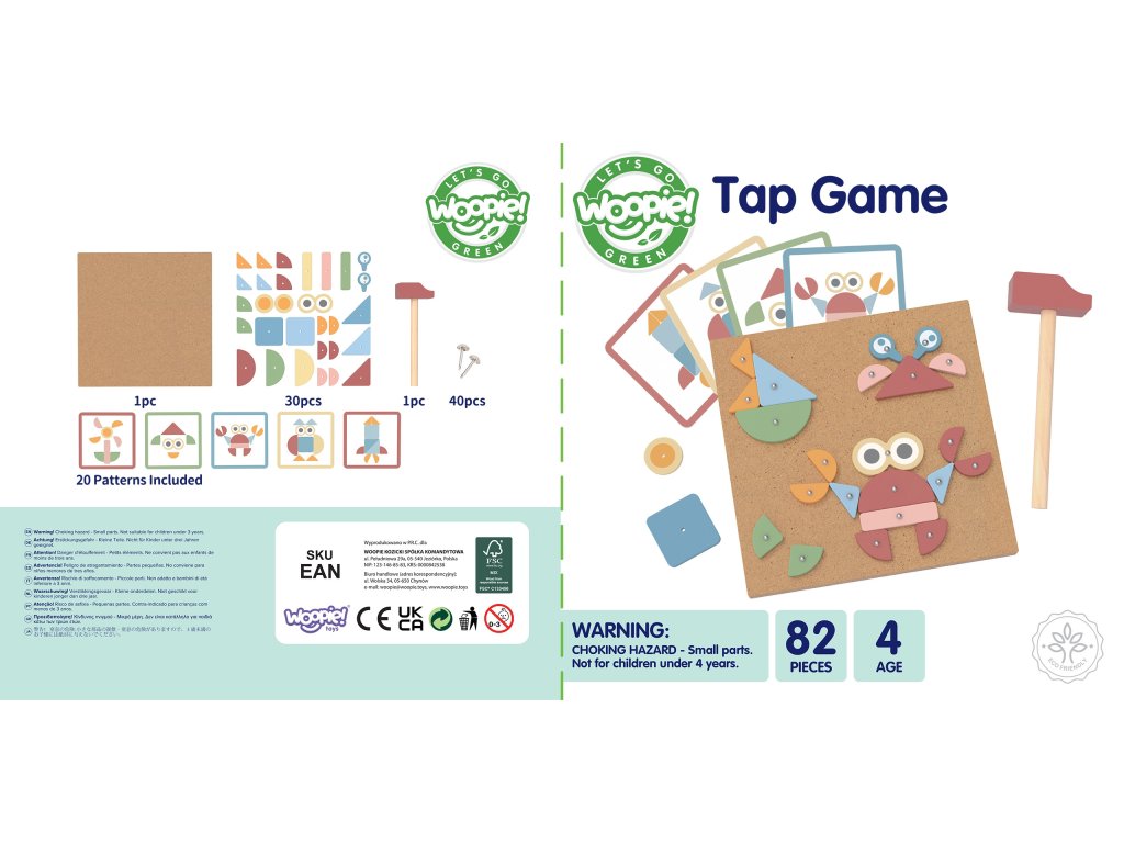 WOOPIE GREEN Drevená klincovačka s kladivom Puzzle 20 vzorov 82 ks