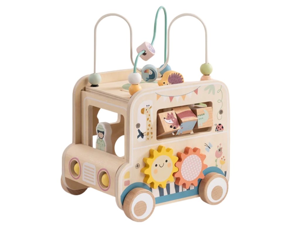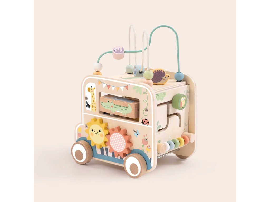 - - Drevená kocka na aktivity s jedinečným dizajnom