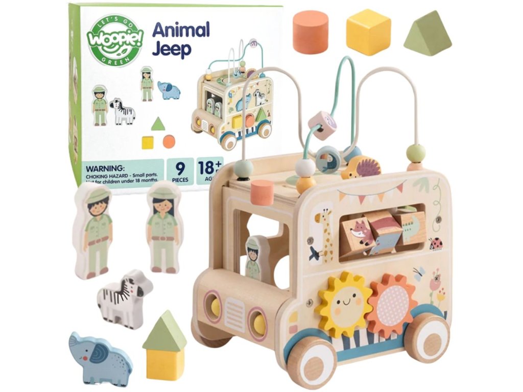 WOOPIE GREEN Drevená kocka na aktivity Terénne auto Safari FSC