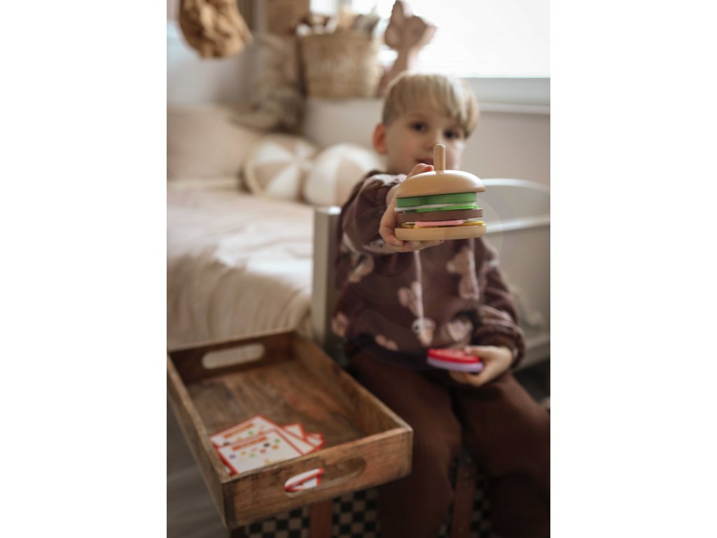 Drevený hamburger od značkyWOOPIE GREEN nachutná dávka vzdelávacej zábavy pre každého malého kuchára! Sada umožňuje deťom obnoviť vzory hamburgerov z kariet alebo vytvoriť vlastné kompozície. Vďakafarebné prísady a obrázkové karty batoľatá sa učia logickému mysleniu, rozvíjajú koncentráciu, kreativitu a pamäť. Ďalšou atrakciou je možnosť hrania rolí - dieťa môže prevziať úlohu kuchára a servírovať svojim hosťom chutné jedlá!