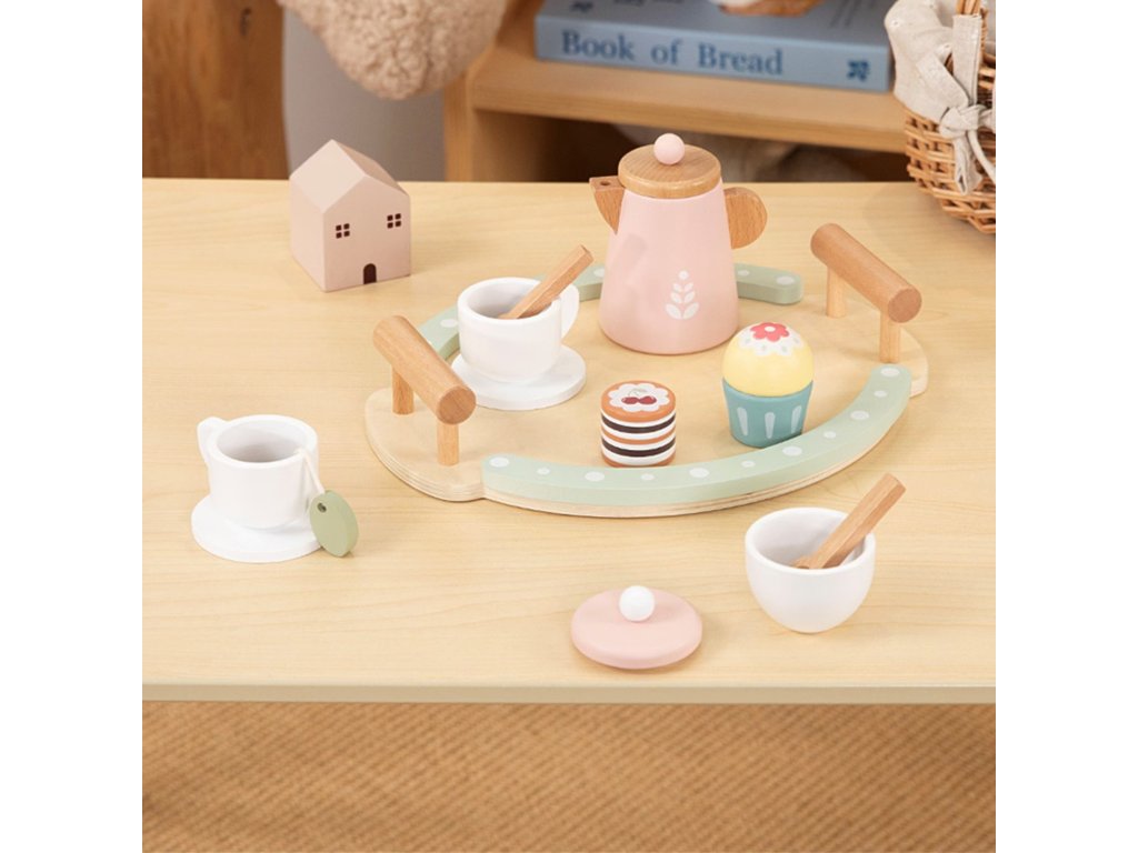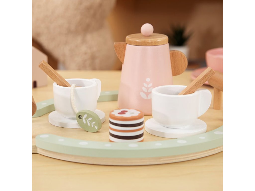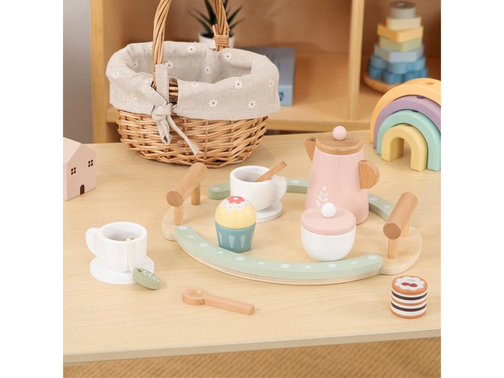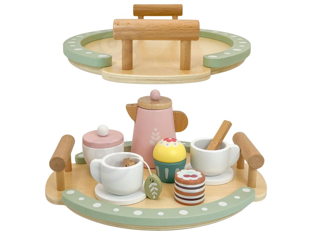 - - Kreativita - Drevené doplnky (šálky, čajník, torta...) umožňujú dieťaťu organizovať vlastné čajové večierky, experimentovať s umiestnením prvkov, vytvárať nové kombinácie a scenáre bez pevných obmedzení.