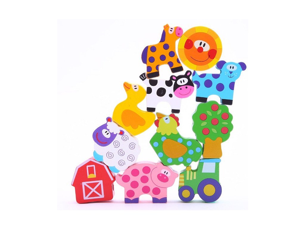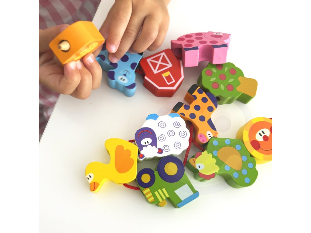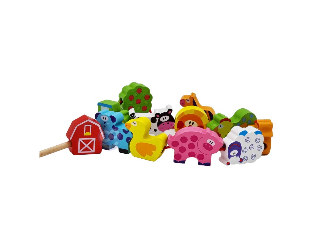 WOOPIE GREEN Drevené navliekacie bloky Zvieratá Farma 13 ks