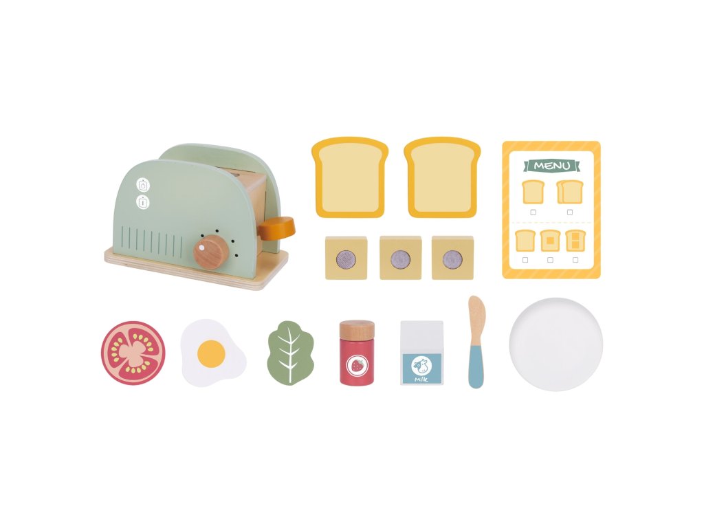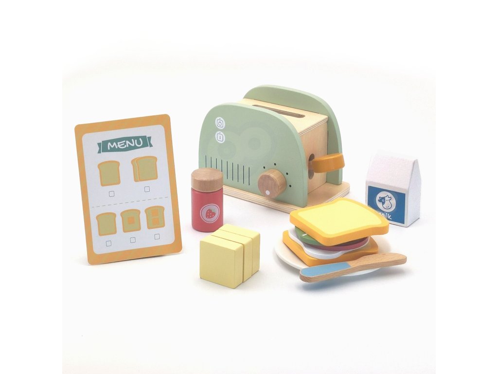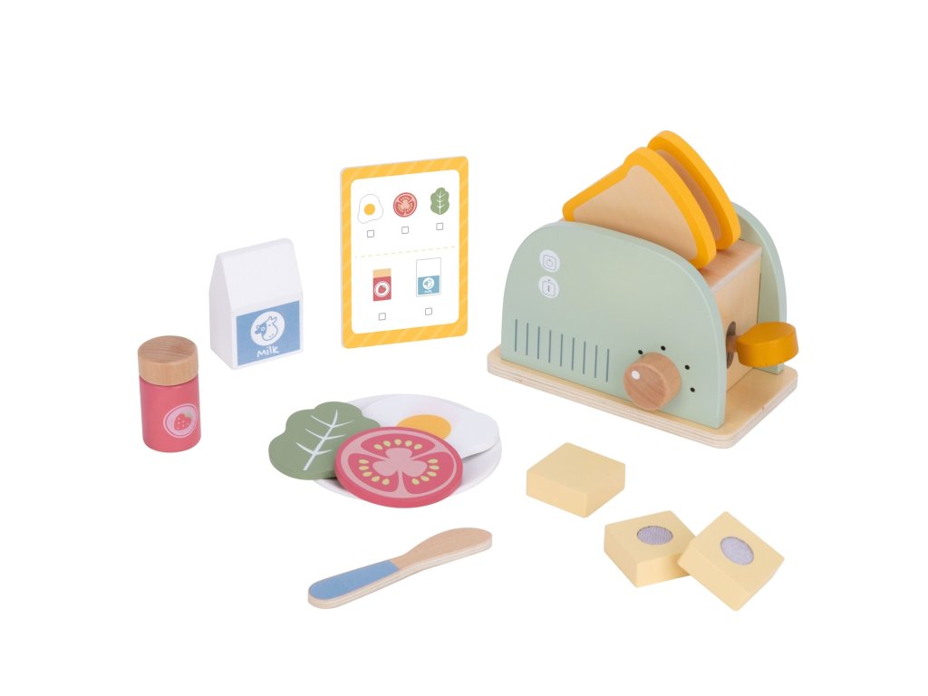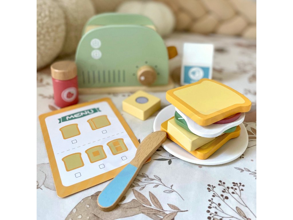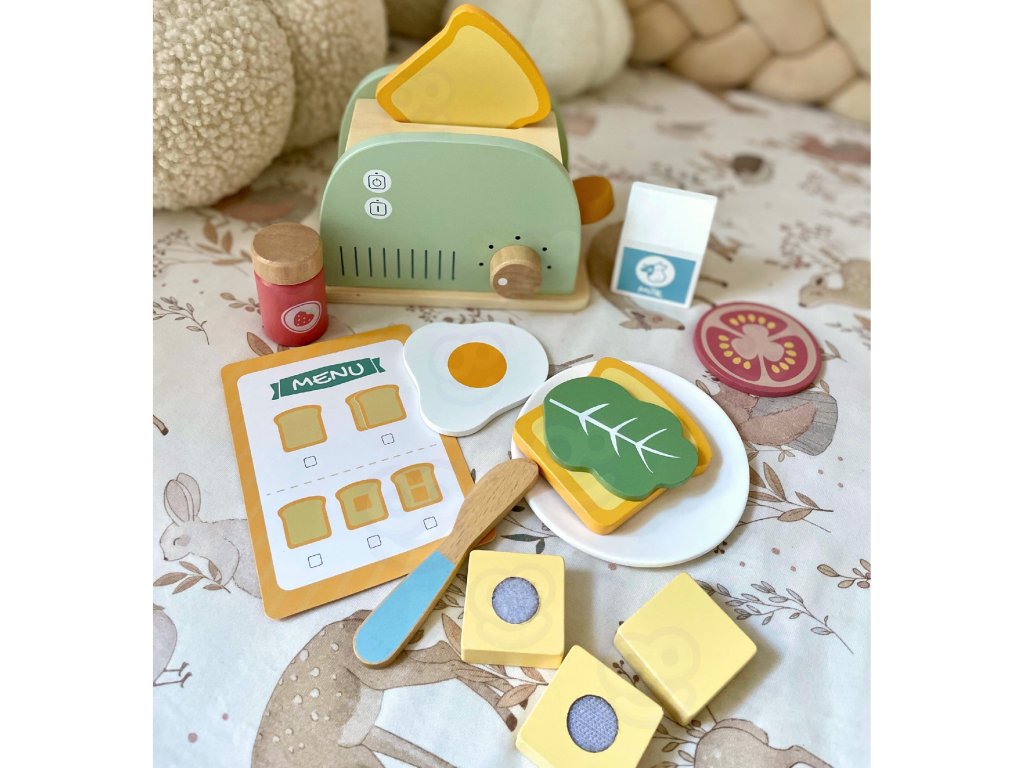 Drevená raňajková súprava s hriankovačom je ideálnou voľbou pre deti, ktoré sa rady hrajú na dom, varia a napodobňujú dospelých. Súprava je inšpirovaná každodennými kuchynskými činnosťami - umožňuje pripraviť chutný toast, vyprážané vajíčko alebo sendvič s prílohami. Vďaka hračke môže vaše dieťa prevziať úlohu malého kuchára a kreatívnym spôsobom rozvíjať svoje sociálne zručnosti a predstavivosť. Celá súprava je vyrobená zbezpečné drevo s hladkou povrchovou úpravou a namaľované netoxickými farbami v pastelových farbách. Hračka je nielen krásna, ale aj pevná a odolná. Súprava je ideálna na samostatnú hru aj na spoločné varenie s rodičom alebo súrodencom. Je to perfektný nápad na darček, ktorý učí prostredníctvom hry a rozvíja každodenné zručnosti dieťaťa.