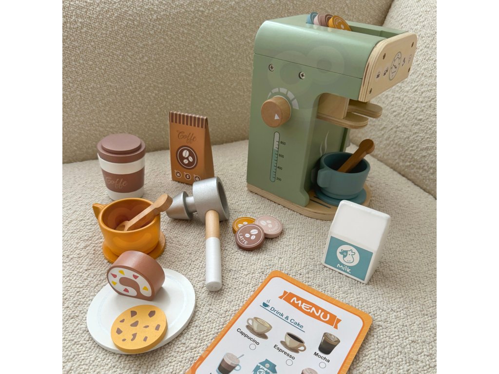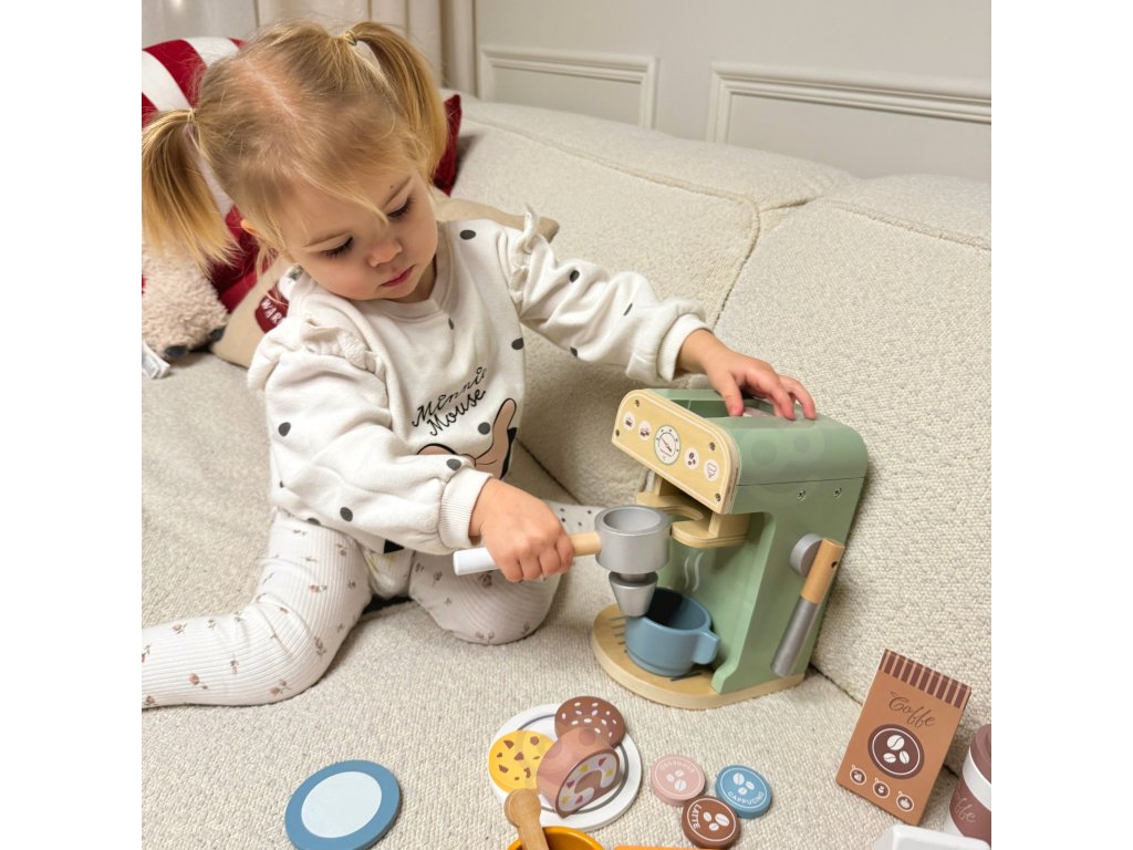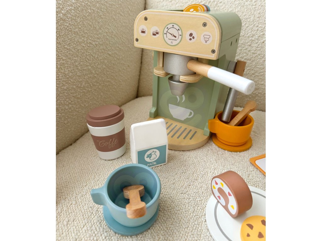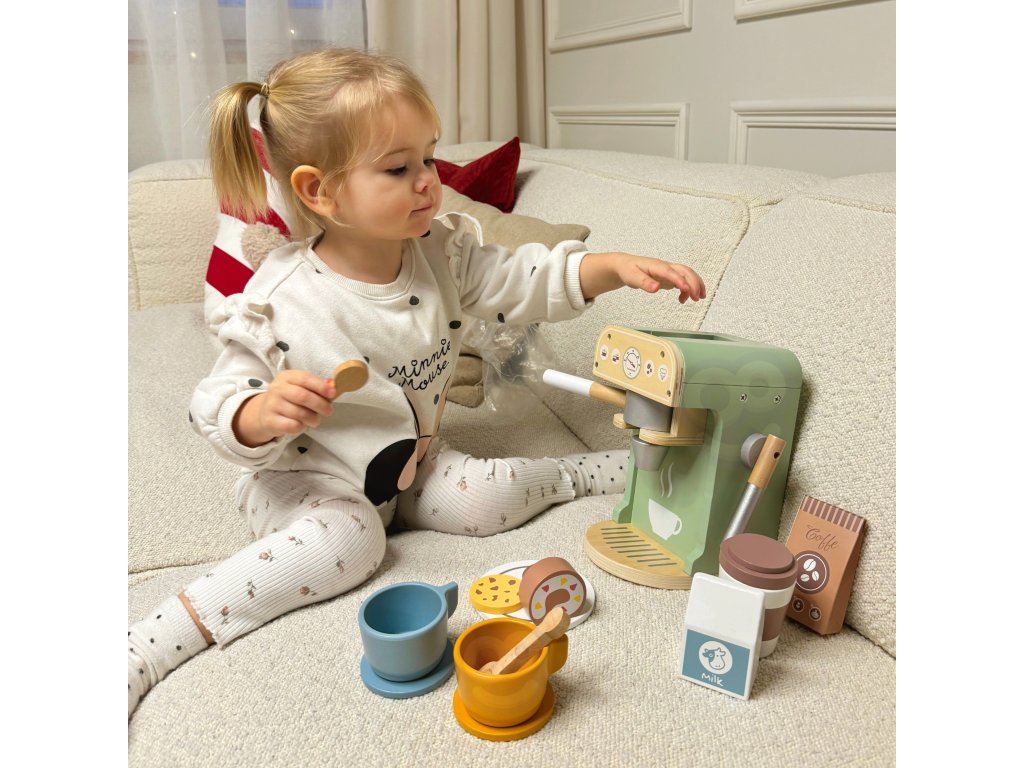 Zabava v kaviarni je skvelou príležitosťou učiť sa hrou! Sada od značkyWoopie Green je ideálnou voľbou pre batoľatá, ktoré snívajú o tom, že sa stanú malými baristami.S 25 prvkami, vrátane kávovaru, šálok, kapsúl a mlieka, deti môžu hrať rolové hry napodobňovaním dospelých. Súprava je vyrobená zprírodné drevo a pnatreté bezpečnostnými farbami zaručuje realistický vzhľad a bezpečnosť počas hry.