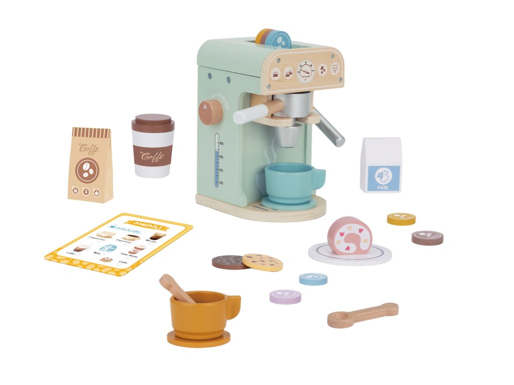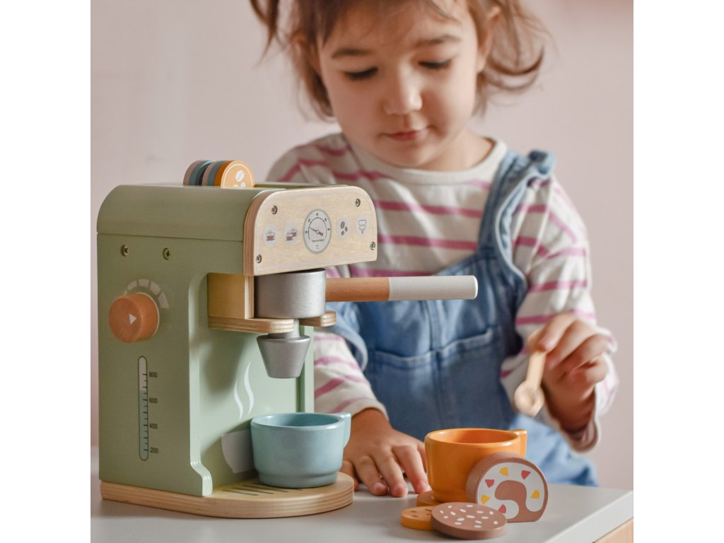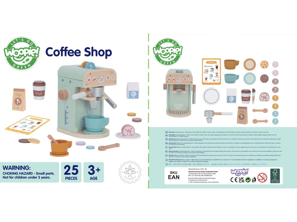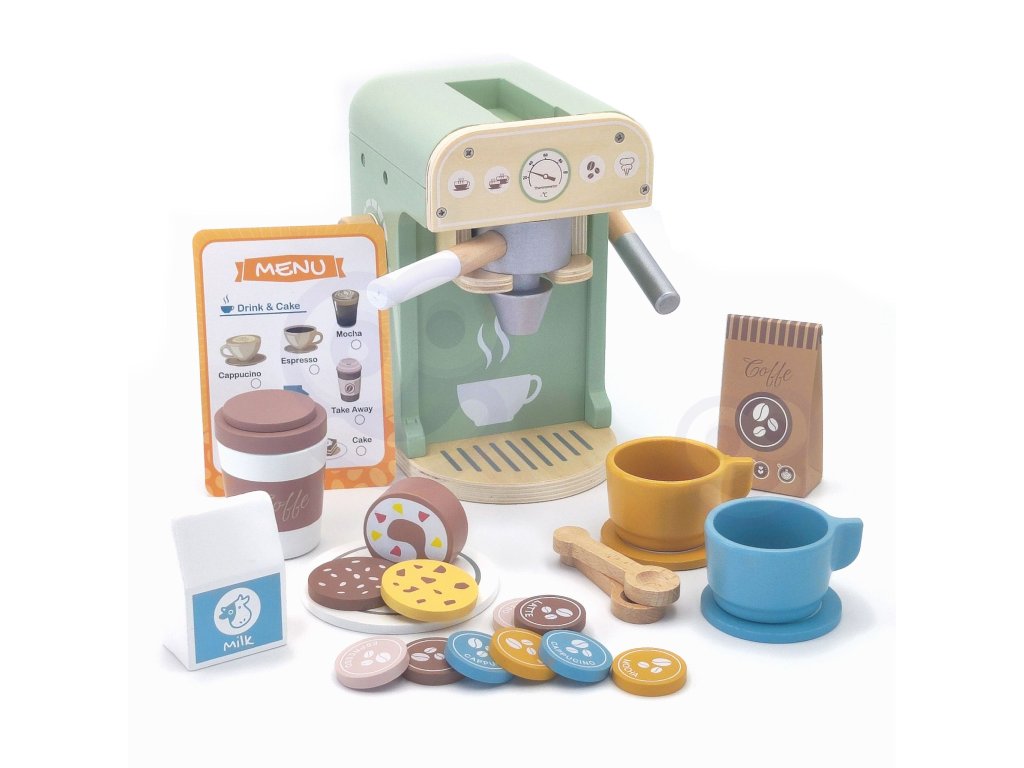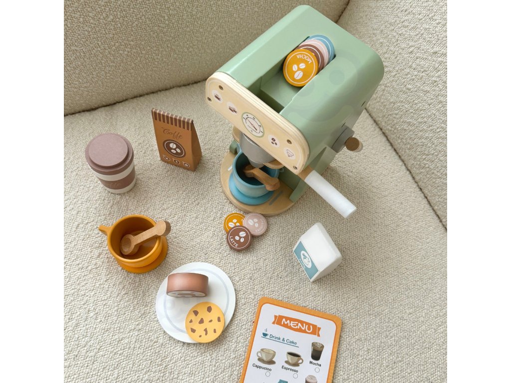 Zabava v kaviarni je skvelou príležitosťou učiť sa hrou! Sada od značkyWoopie Green je ideálnou voľbou pre batoľatá, ktoré snívajú o tom, že sa stanú malými baristami.S 25 prvkami, vrátane kávovaru, šálok, kapsúl a mlieka, deti môžu hrať rolové hry napodobňovaním dospelých. Súprava je vyrobená zprírodné drevo a pnatreté bezpečnostnými farbami zaručuje realistický vzhľad a bezpečnosť počas hry.