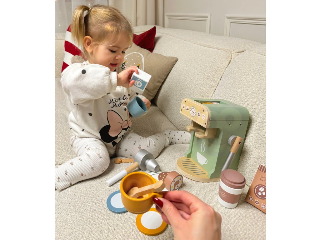 - - Manuálne zručnosti - Manipulácia so šálkami, lyžičkami, kapsulami a iným príslušenstvom rozvíja presné pohyby a koordináciu oko-ruka. Týmto spôsobom si batoľa precvičuje jemnú motoriku, čo je užitočné pri učení sa písať, kresliť a iných každodenných činnostiach.