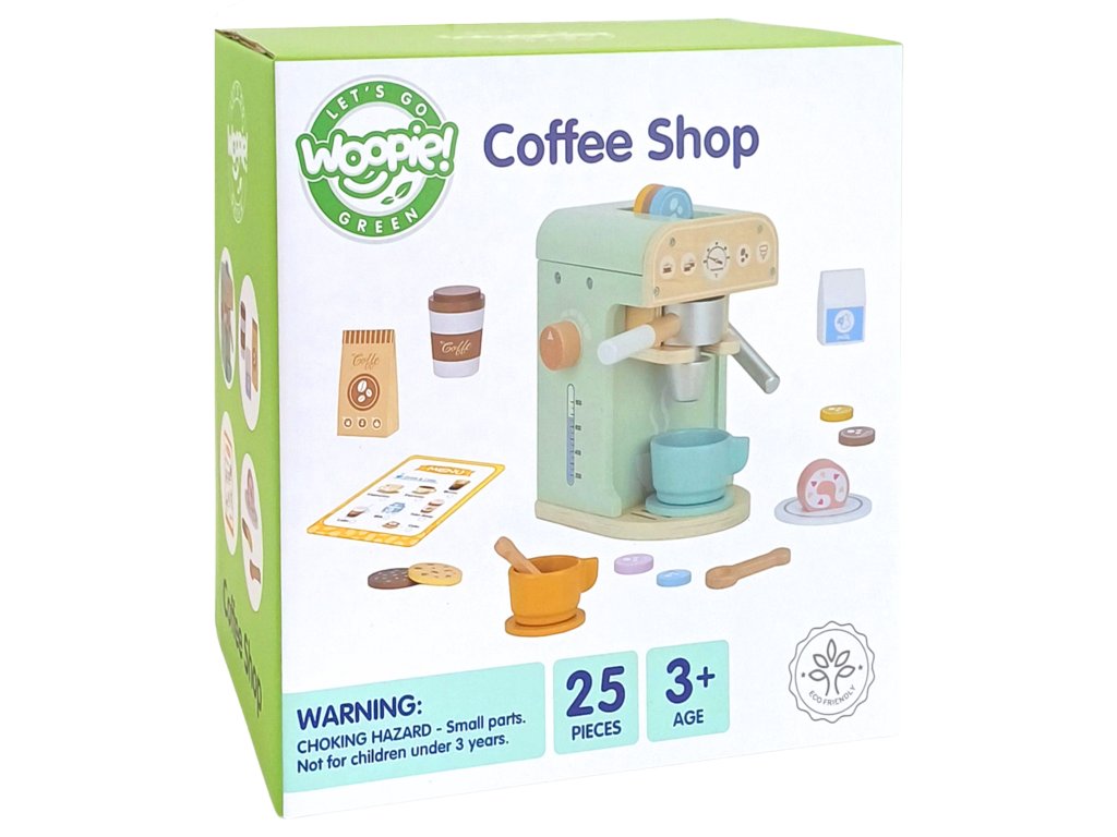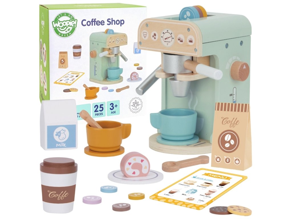 WOOPIE GREEN Drevený kávovar Cukráreň Barista 25 ks