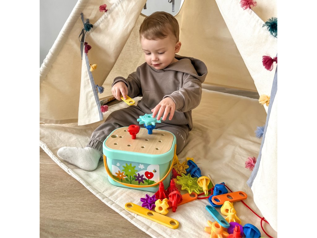 WOOPIE GREEN Konštruktívna Montessori motorická skrinka 12v1 FSC