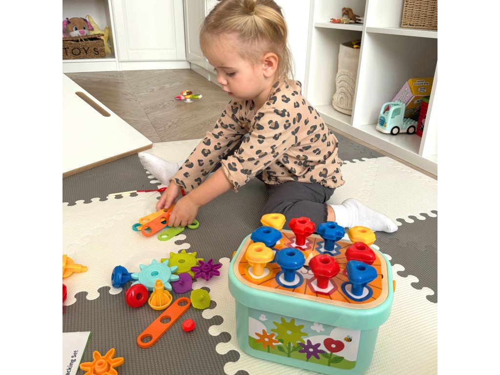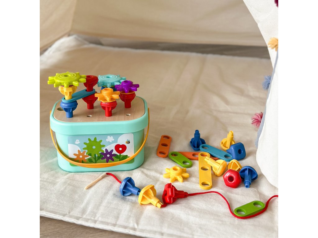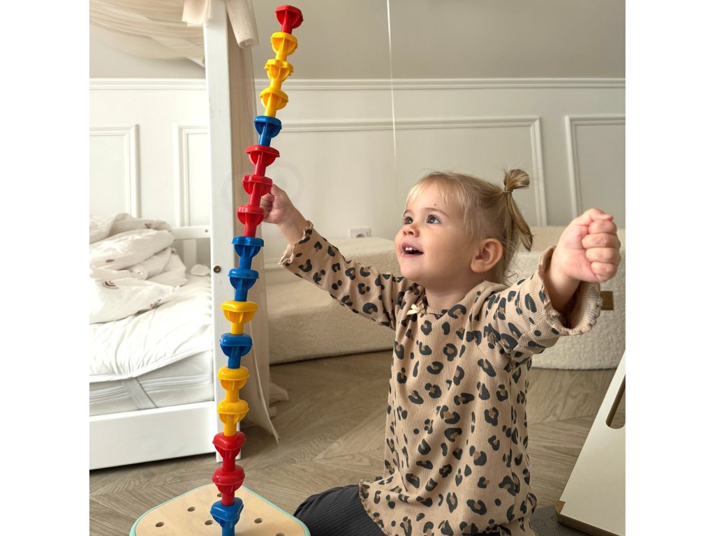 - - Manuálne zručnosti - usporiadanie, navliekanie a manipulácia s malými časťami posilňuje jemnú motoriku a presnosť pohybu