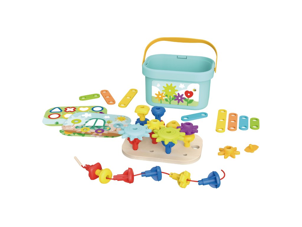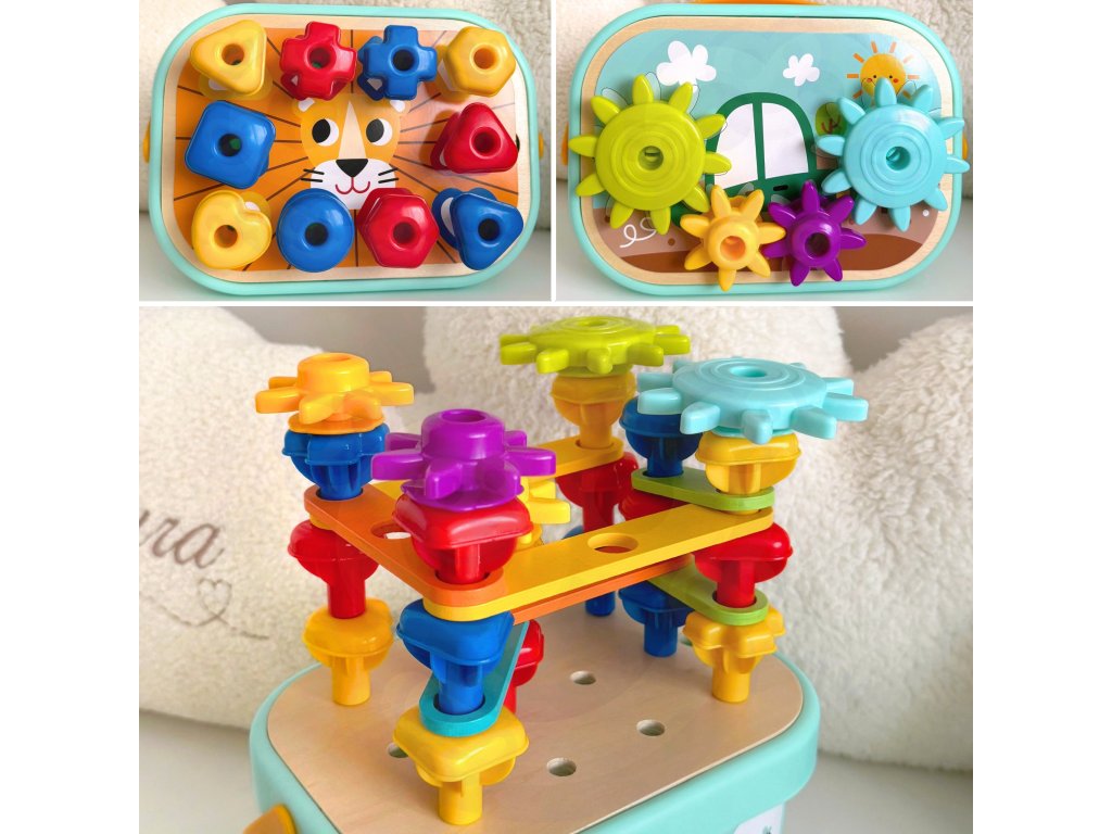 Zábava je nekonečná - kým12 rôznych funkcií v jednej kompaktnej súprave!Usporadúvanie vzorov, učenie sa tvarov a farieb, stavanie 3D štruktúr alebo hranie sa so strojmi na navliekanie nití - To všetko na pevnej drevenej doske, ktorá je zároveň úložným boxom!