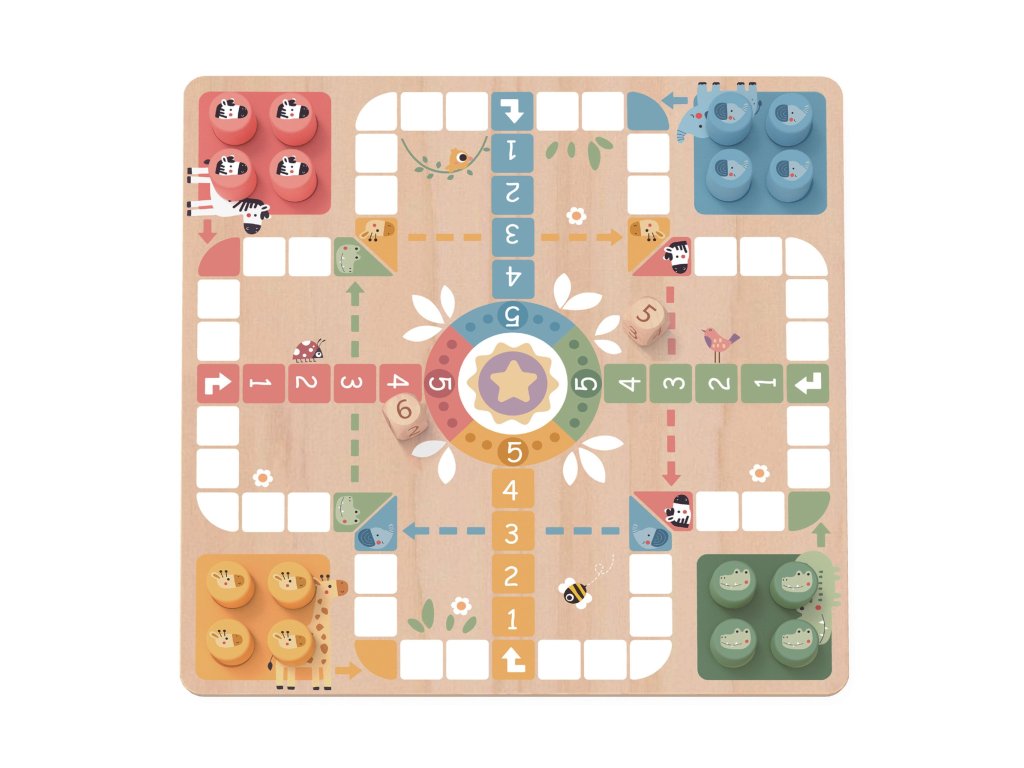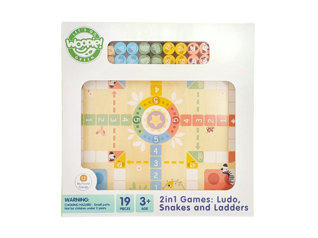 Výmena voľného časudo napínavého dobrodružstva s klasickou stolnou hrou moderným, ekologickým spôsobom!WOOPIE GREEN - stolová hra 2 v 1 sú dva známe a obľúbené tituly:Ludo (čínsky) aOsloboďte zvieratáposkytuje hodiny pútavej a rozvíjajúcej zábavy pre celú rodinu! Farebná hracia plocha, drevené figúrky a jednoduché pravidlá robia z tohto dosskvelý návrh pre deti od 3 rokov - spoločné hranie ešte nikdy nebolo také zábavné!