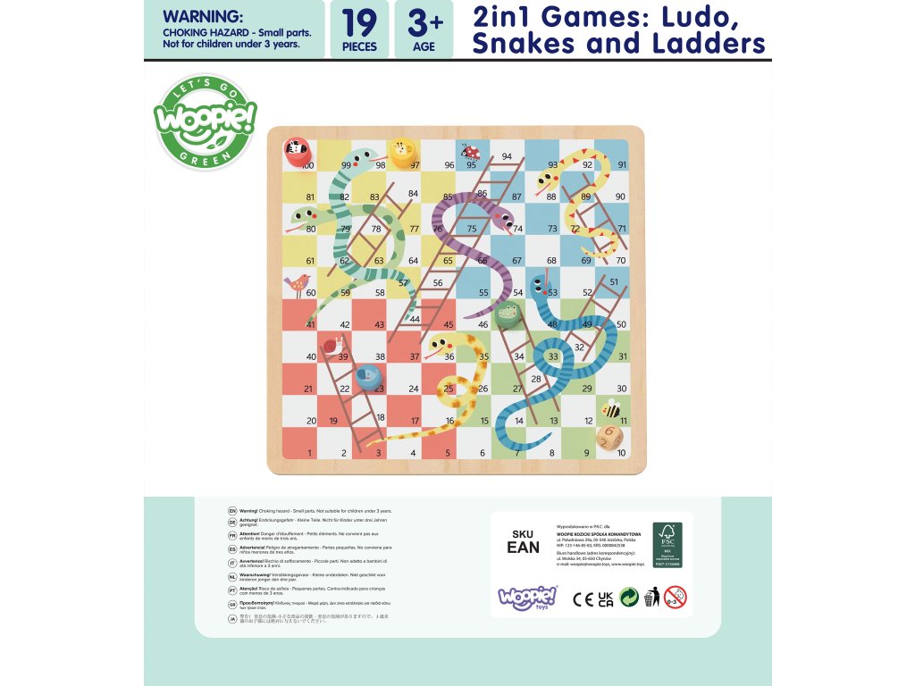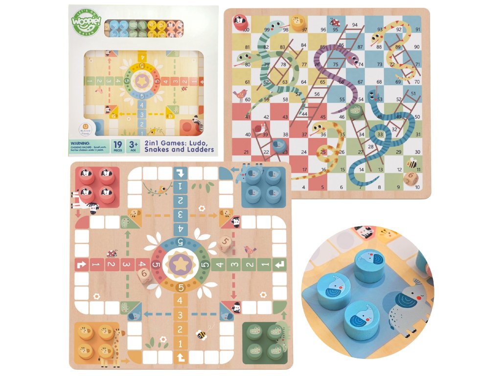 WOOPIE GREEN Logická stolová hra 2v1 Ludo Chinese + Snakes and Ladders
