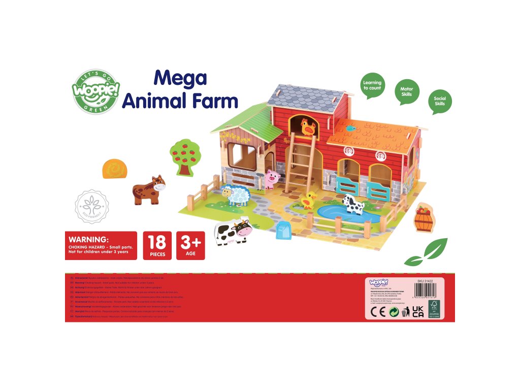 Mega farma WOOPIE GREEN je súprava, ktorá vaše dieťa prenesie priamo na vidiek -do sveta zvierat, prírody a každodenného života farmár!