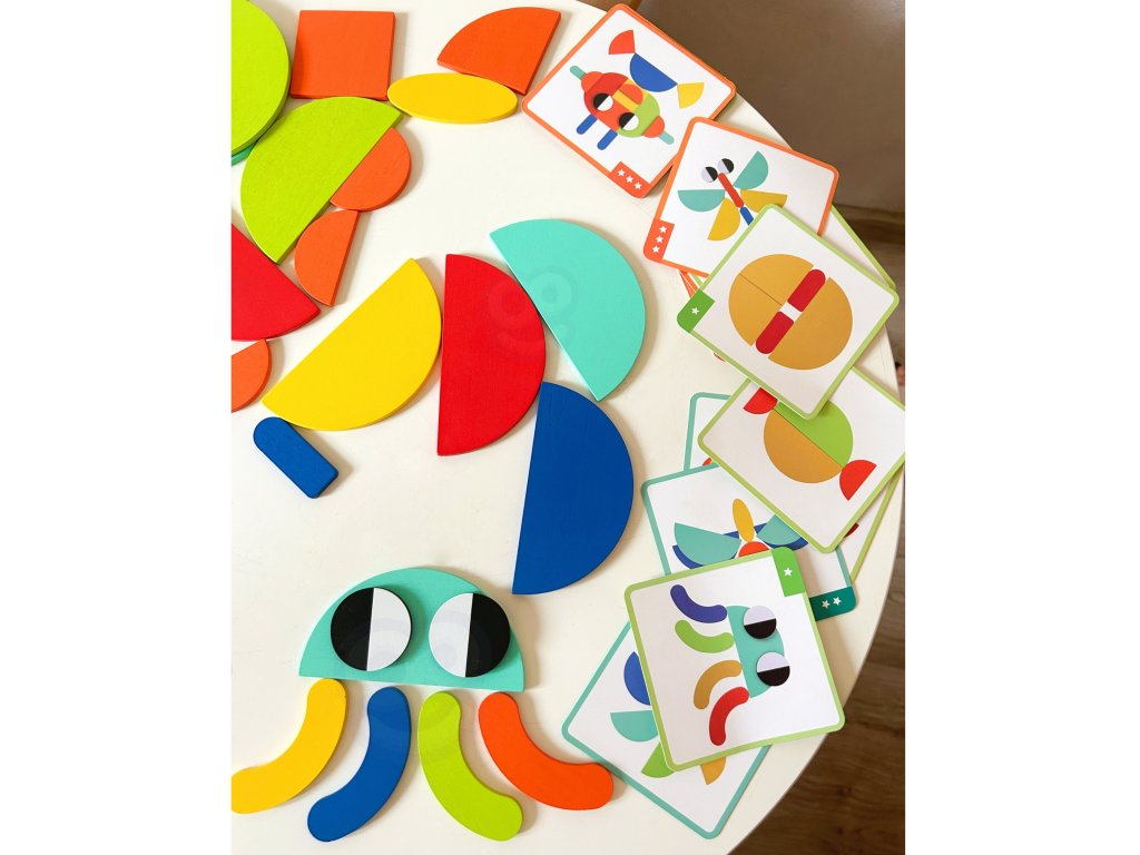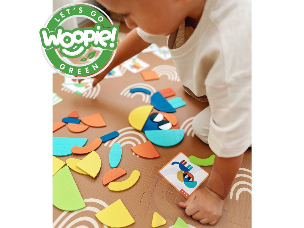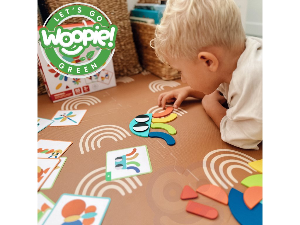 Montessori drevené puzzle WOOPIE GREEN je ideálna vzdelávacia hračka pre malých objaviteľov - sada pozostáva z farebných blokov a kartičiek so vzormi, ktoré sa dajú usporiadať, zapamätať si a dokonca aj vynoviť! Je to nielen vynikajúca pomôcka na učenie tvarov a farieb, ale aj úžasnávývojový nástroj koncentráciu, pamäť a kreativitu.