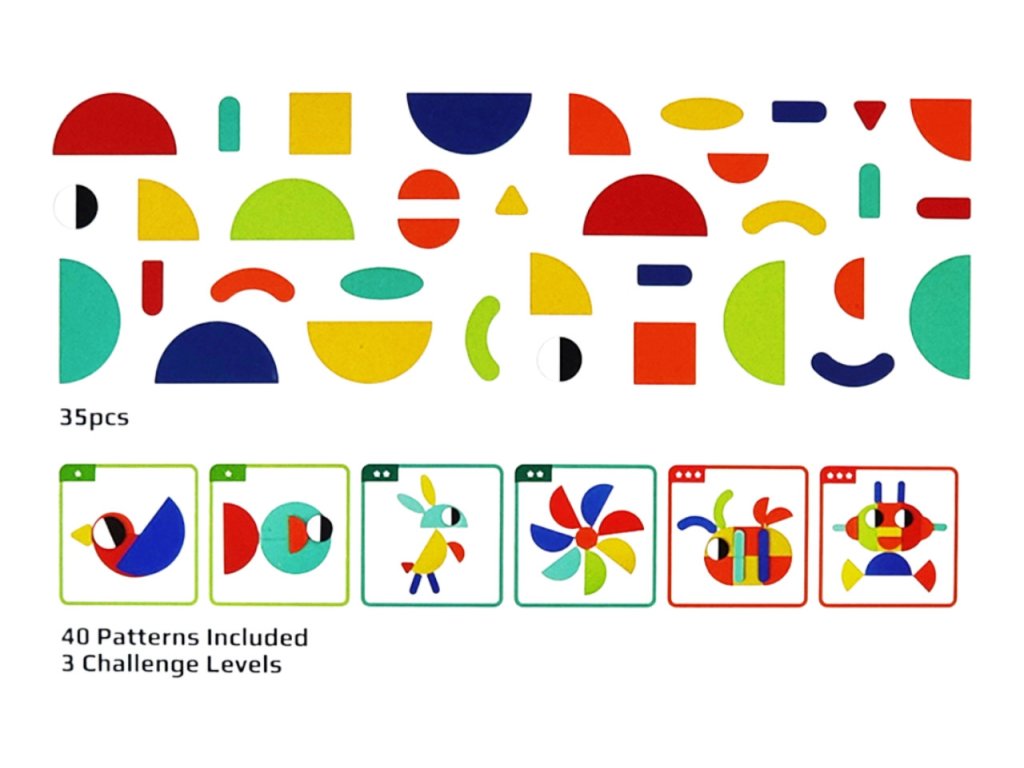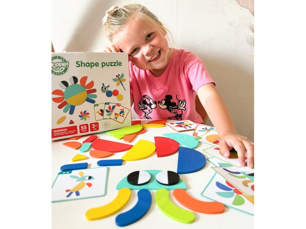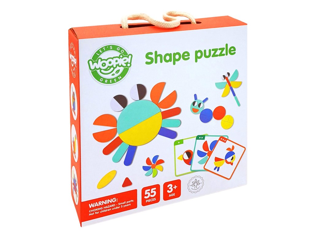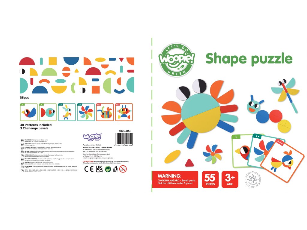 WOOPIE GREEN Montessori drevené puzzle 40 reprodukovateľných vzorov 55 ks Certifikát FSC