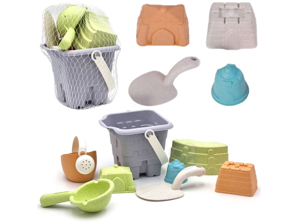 WOOPIE GREEN Piesková súprava vo vedierku 8 ks BIOLOGICKY ROZLOŽITEĽNÝ ORGANICKÝ MATERIÁL