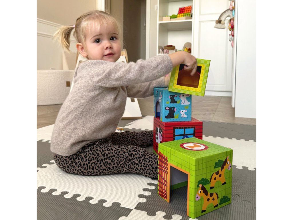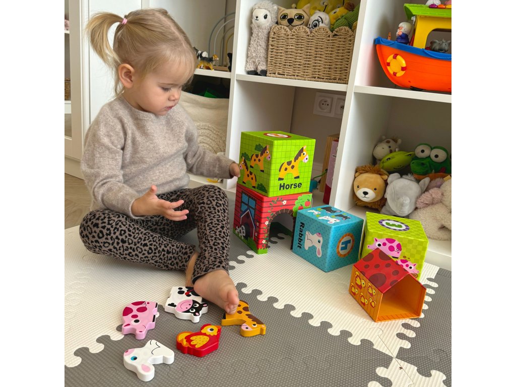 Súbor nielen zabáva, ale aj vzdeláva - učí počítanie, rozlišovanie zvierat, rozvíja priestorové vnímanie a predstavivosť. Kocky sa dajú použiť ajna skladovanie drobnostiako naprpastelky alebo figúrky.