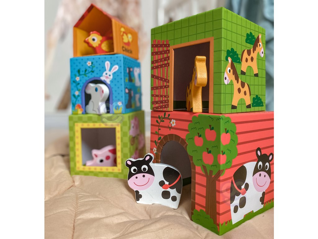 WOOPIE GREEN Puzzle Farmárske kocky v krabičkách + figúrky 10 ks