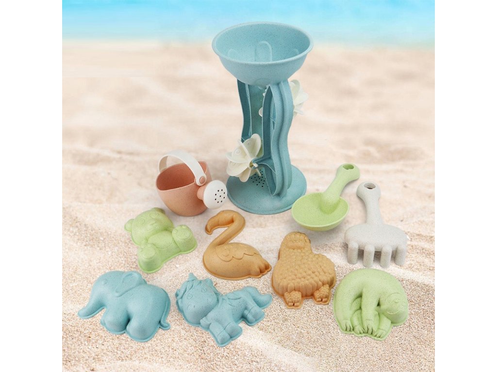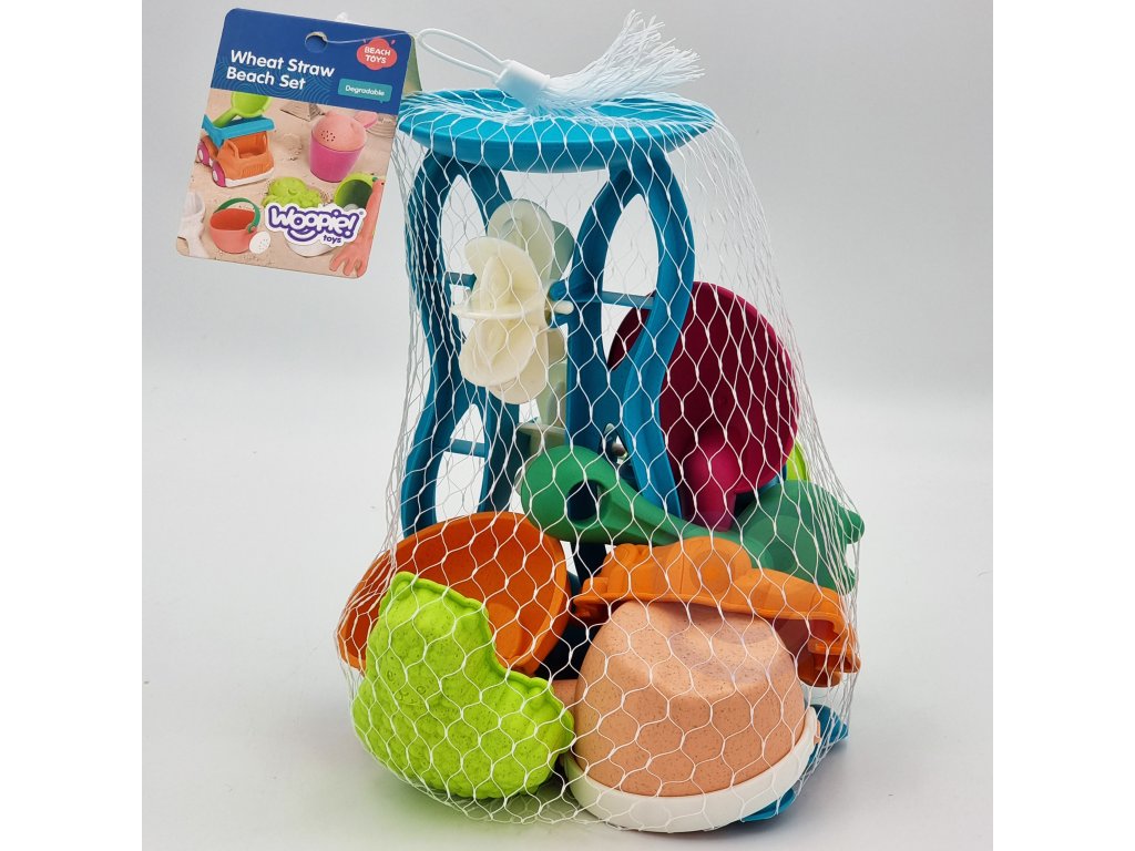 WOOPIE GREEN Sada na piesok s cievkou a kanvou na zalievanie 10 ks BIOLOGICKY ROZLOŽITEĽNÝ ORGANICKÝ MATERIÁL