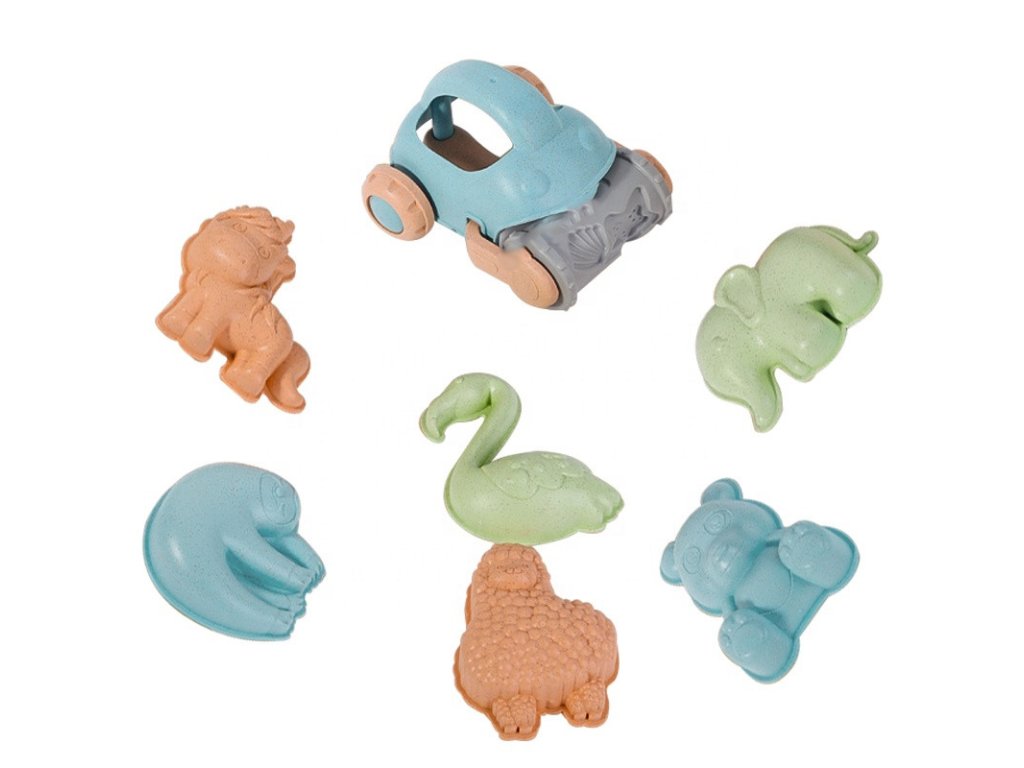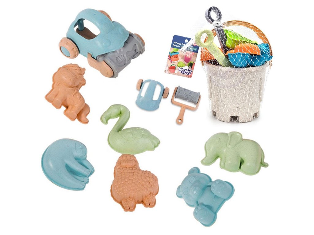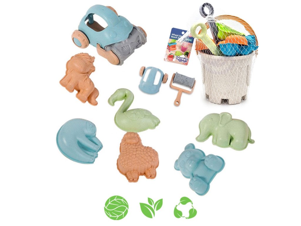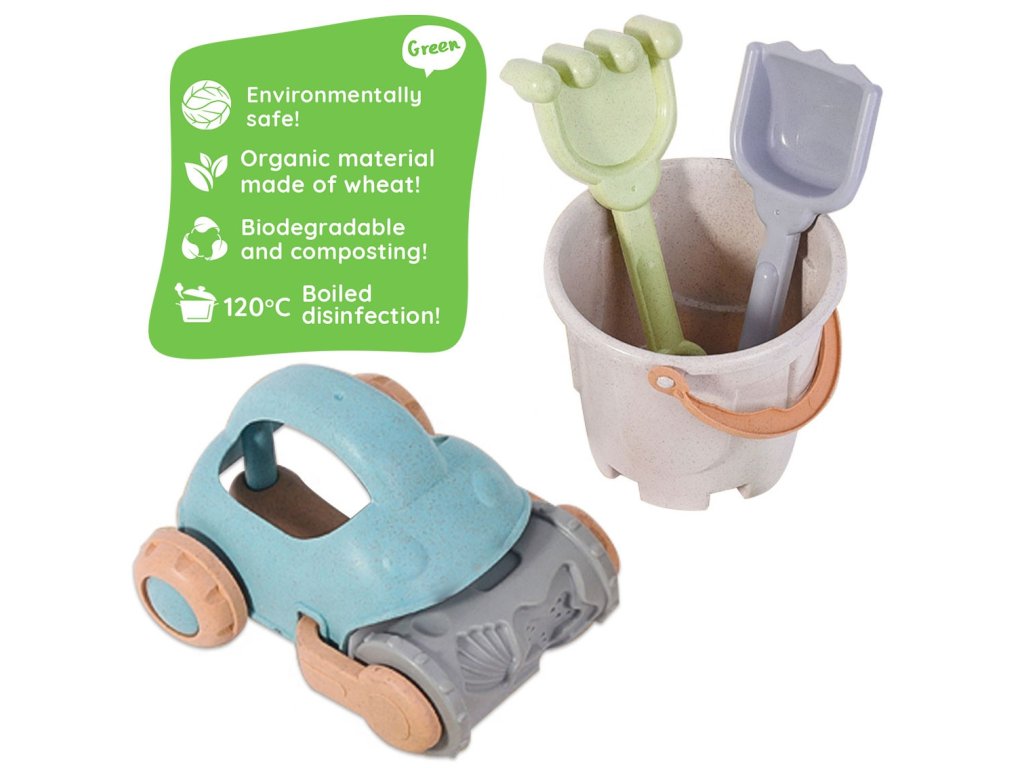 WOOPIE GREEN Sada na piesok s vedierkom a autíčkom 10 ks BIOLOGICKY ROZLOŽITEĽNÝ ORGANICKÝ MATERIÁL