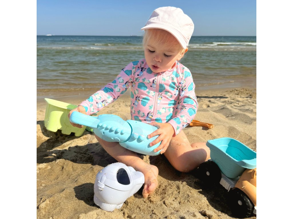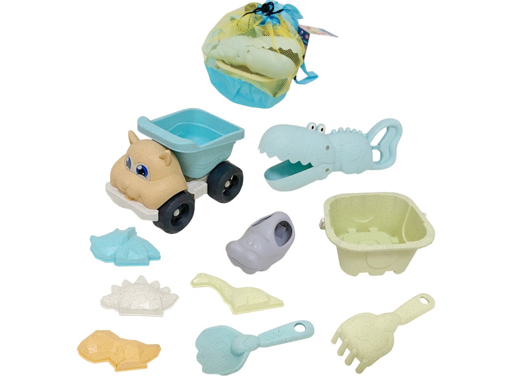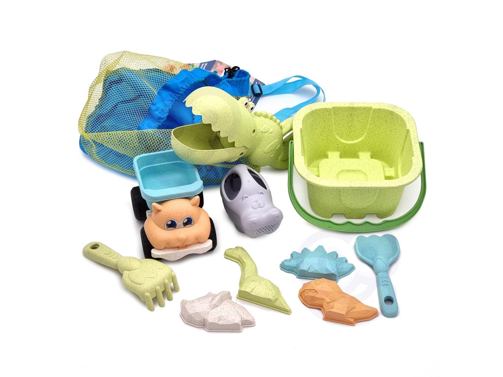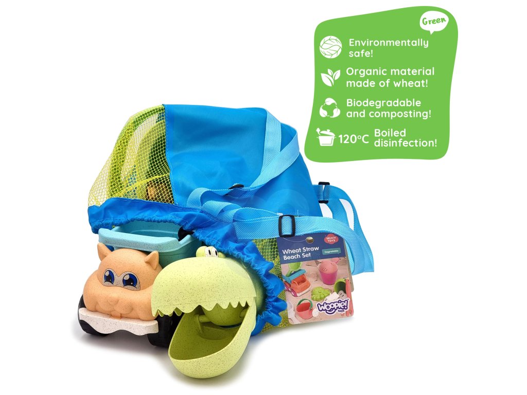 WOOPIE GREEN Sada na piesok s vedierkom a lopatkou Krokodíl v ruksaku 10 ks BIOLOGICKY ROZLOŽITEĽNÝ ORGANICKÝ MATERIÁL