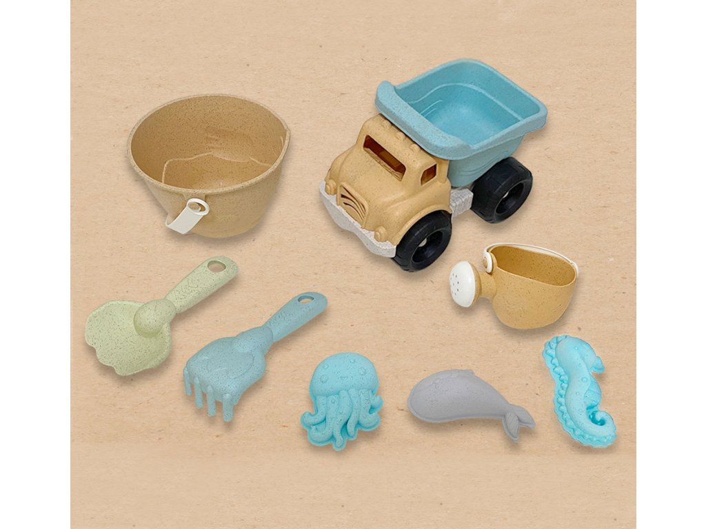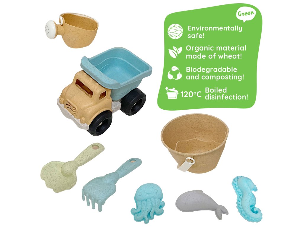 WOOPIE GREEN Sand Set Bucket Tipper 8 ks BIOLOGICKY ROZLOŽITEĽNÝ ORGANICKÝ MATERIÁL