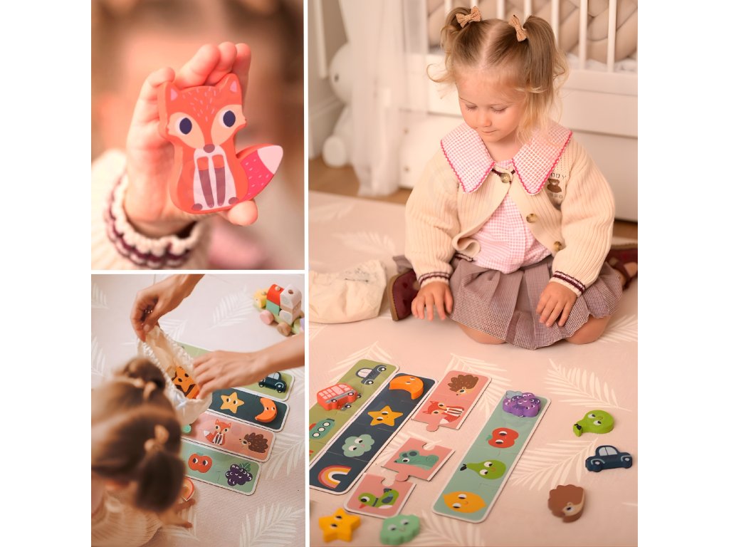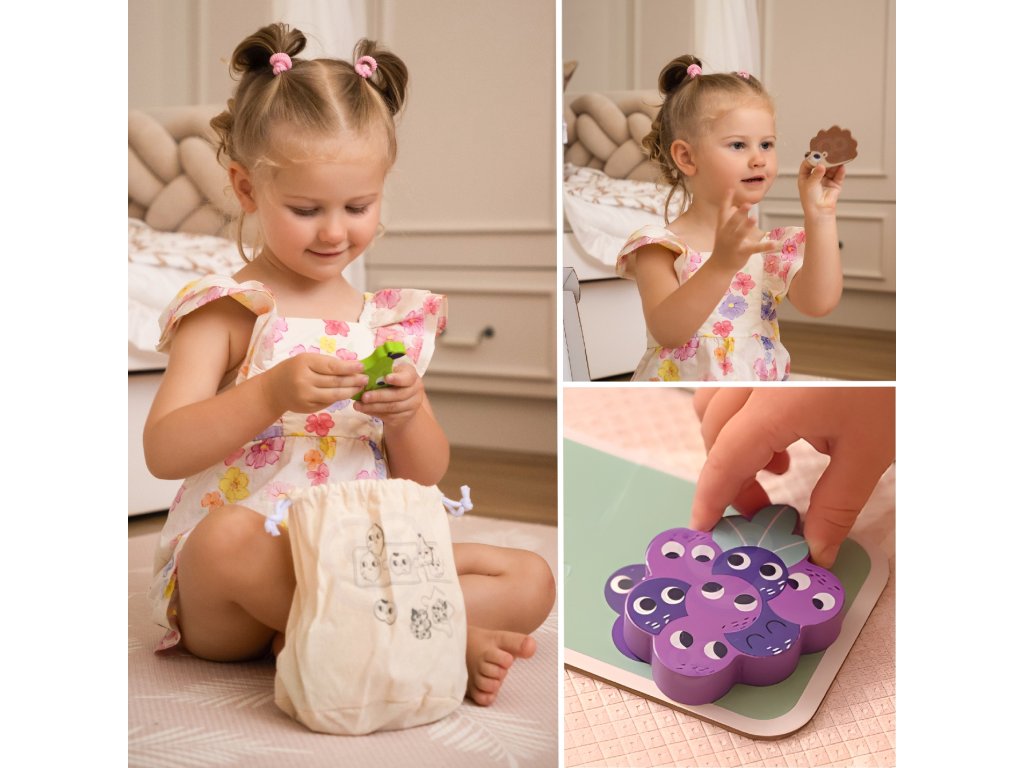 Táto jedinečná drevená vzdelávacia hra "Dotkni sa a nájdi" značky WOOPIE GREEN! je fantastický spôsob zábavy pre celú rodinu. Kombinuje prvkyzmyslové ipamätník, ktoré deti zapájajú do vzrušujúceho hľadania tvarov v plátennom vrecku len pomocou hmatu. Je vyrobená z dreva najvyššej kvality a bezpečných materiálov, čo zaručuje odolnosť a bezpečnosť pre batoľatá už odod 3 rokov. Táto hra nielen zabáva, ale aj účinne podporuje kľúčové oblasti rozvoja dieťaťa vrátane koordinácie a koncentrácie. Je to dokonalá súprava, ktorá prináša učenie farieb, tvarov a čísel do sveta radostnej, kooperatívnej hry.