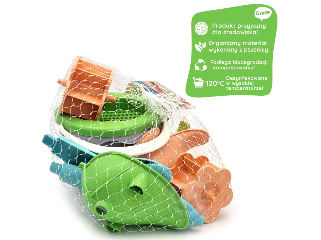 Súprava na piesok s vedierkom a navijakom od značkyWOOPIE zo série ZELENÁ je skvelým doplnkom na pieskovisko alebo aj do záhrady. Súprava obsahuje 4 prvky: vedro, navijak 2 formy. Vedro mápohodlná rukoväť nosiť. Súprava má najmodernejšiepastelový dizajn a bol vyrobený zorganické a biologicky rozložiteľné (podlieha samovoľnému rozkladu) materiál. Okrem toho podliehakompostovanie. Produktbezpečné pre deti - dezinfikované pri teplote 120 stupňov. Záruka super zábavy v pieskovisko, napláža dokonca aj vzáhrada!Produkt šetrný k životnému prostrediu!