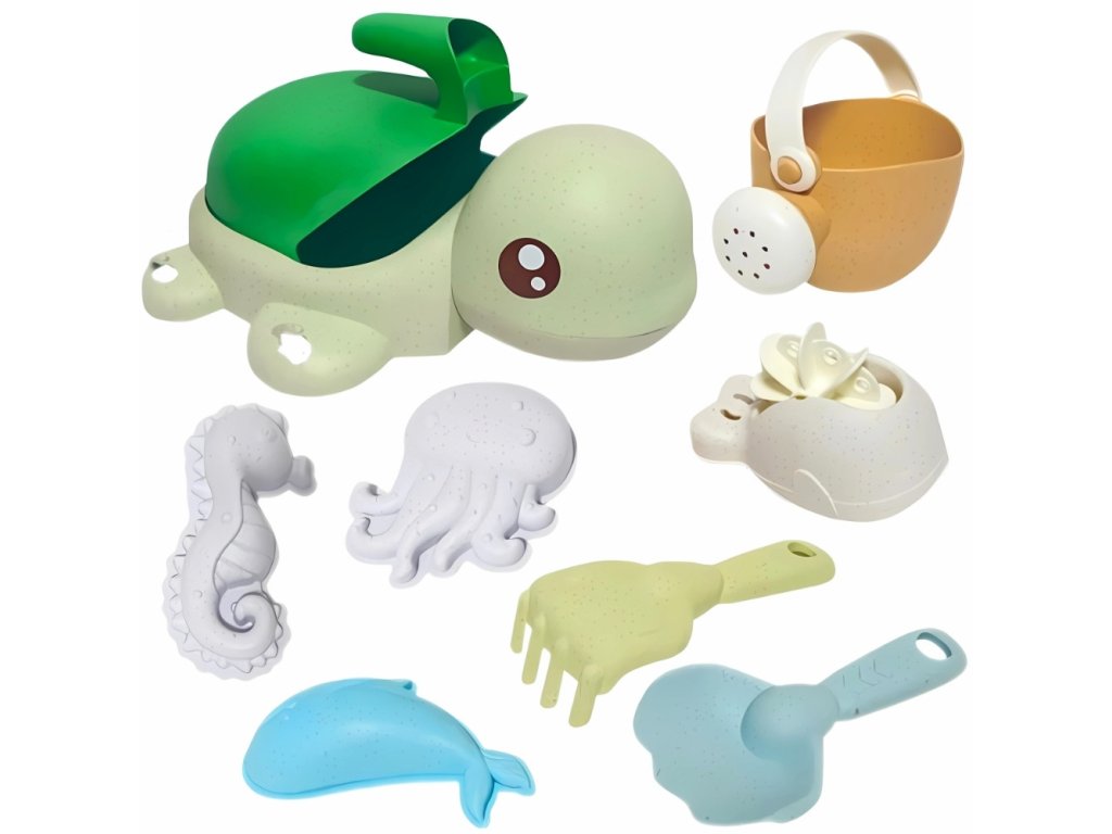 WOOPIE GREEN Súprava do piesku a do vane 2 v 1 Želva 8 ks BIOLOGICKY ROZLOŽITEĽNÝ ORGANICKÝ MATERIÁL