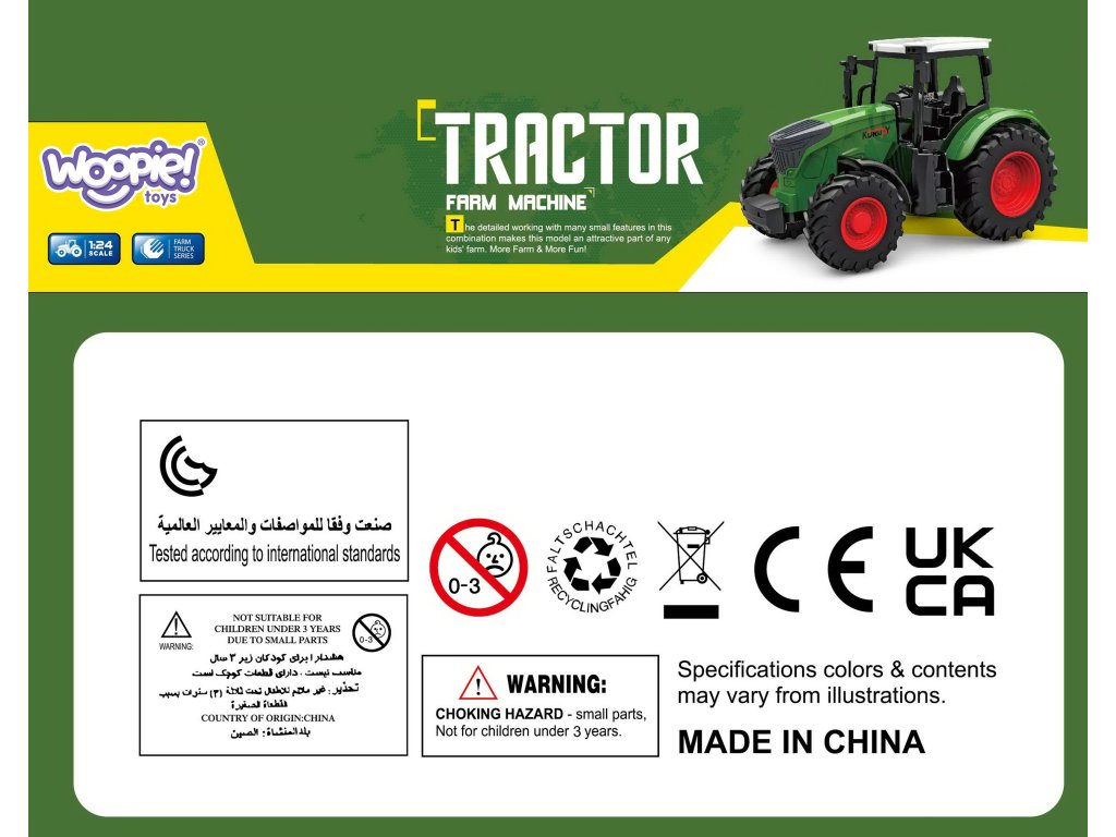 Zelený traktor od značkyWOOPIE je hračka určená pre najmenších milovníkov poľnohospodárskych strojov. Je to skvelá hračka, ktorá v sebe spája vzdelávaciu a zábavnú hodnotu. Je bezpečná, odolná a ľahko sa používa, takže je ideálnou voľbou pre deti, ktoré sa zaujímajú o poľnohospodárske stroje a hru vonku. Počas domácej hry vaše dieťatko ľahko pochopí, ako vyzerá život na farme plný mnohých prác.Rozvíja motorické zručnosti, jemnú motoriku a svaly dieťaťa. Traktor máštyri gumené kolesáktoré zvládnu neočakávané manévre a perfektne sa držia na zemi. Celá kabína je identicky reprodukovaná ako v skutočnej predlohe. Behúň kolies, sedadlá a volant sa podobajú skutočnému traktoru.