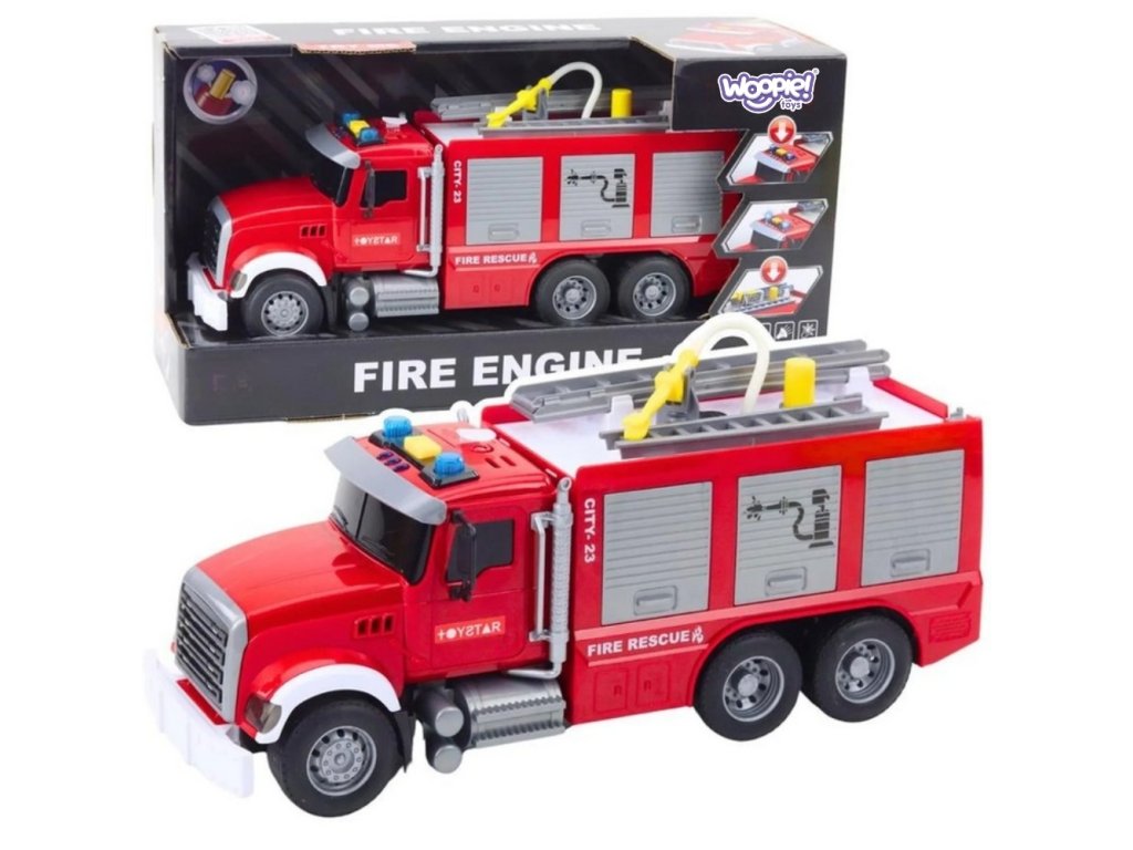 Interaktívne hasičské auto s funkciou vodnej striekačky od značky Woopie je mimoriadne atraktívna hračka, ktorá deťom poskytuje realistickú, kreatívnu a pútavú hru. Vďaka veľkej mierke a vernej reprodukcii skutočného záchranárskeho vozidla nákladné auto okamžite upúta pozornosť batoliat a povzbudí ich, aby sa vžili do úlohy odvážneho hasiča. Multifunkčnosť tohto vozidla z neho robí skutočný skvost medzi detskými hračkami.Zvukové efekty(siréna, klaksón) asvetelné efekty Dodávajú hre autentický nádych a budujú atmosféru záchrannej operácie. Najväčšou atrakciou je funkcia rozprašovania vodyktorá sa uskutočňuje prostredníctvom plniteľnej nádrže a čerpadla - dieťa môže "hasiť" požiare a zachraňovať situáciu, cíti sa ako skutočný hasič! Robustná, dômyselná konštrukcia apohyblivé prvky (napríklad rebrík alebo rameno s tryskou) umožňujú širokú škálu činností - od jednoduchého jazdenia po podlahe až po zložité scény a simulované záchranné operácie. Hračka bola navrhnutá s ohľadom na bezpečnosť najmenších a zároveň rozvíjamotorická koordinácia, kreativita a logické myslenie. Vďaka vysokej kvalite spracovania a zmyslu pre detail je to tiež skvelý nápad na darček pre malých milovníkov špeciálnych vozidiel a záchranných služieb.