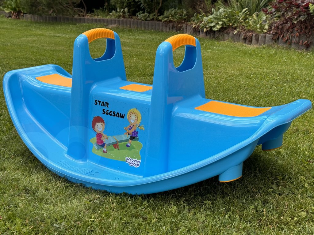 STAR hojdačka pre viac osôb Modrá značkyWoopie je skutočnýhviezda medzi deťmi! Hojdačku môže používať maximálnetri deti v rovnakom čase, a dokoncajeden si užijete skvelý čas. Keď sa deti hojdajú vdva to v nich navyše rozvíja schopnosťspoluprácu.Hojdacie kreslo má špeciálne protišmykové podložky na sedadle a na ochranu rukovätí. Hojdačka sama o sebe poskytuje deťom mnoho výhod. Samotné hojdanieupokojuje dieťa avyvíja kapacity motorické zručnosti telo, ktoré je ideálne pre správny vývoj. Hojdačku možno používať v interiéri aj exteriéri!