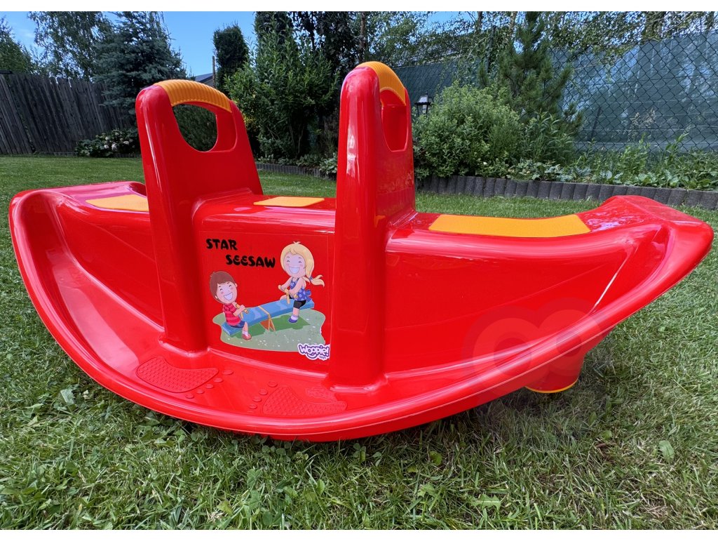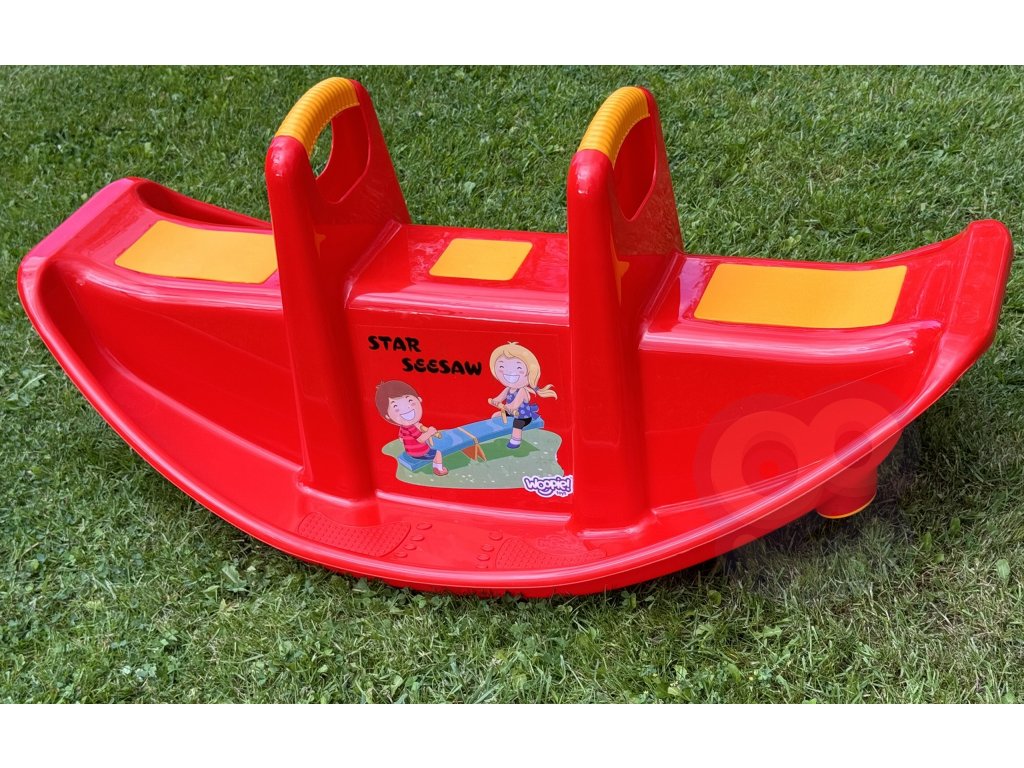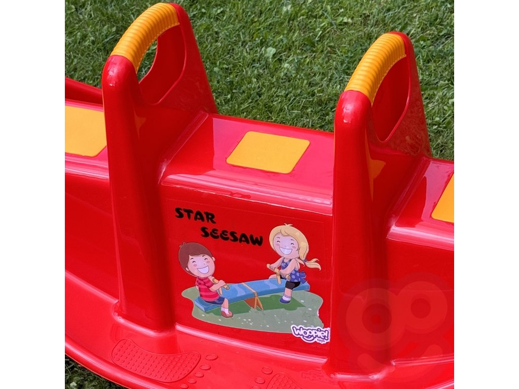 STAR hojdačka pre viac osôb Červená značkyWoopie je skutočnýhviezda medzi deťmi! Hojdačku môže používať maximálnetri deti v rovnakom čase, a dokoncajeden si užijete skvelý čas. Keď sa deti hojdajú vdva to v nich navyše rozvíja schopnosťspoluprácu.Hojdacie kreslo má špeciálne protišmykové podložky na sedadle a na ochranu rukovätí. Hojdačka sama o sebe poskytuje deťom mnoho výhod. Samotné hojdanieupokojuje dieťa avyvíja kapacity motorické zručnosti telo, ktoré je ideálne pre správny vývoj. Hojdačku možno používať v interiéri aj exteriéri!