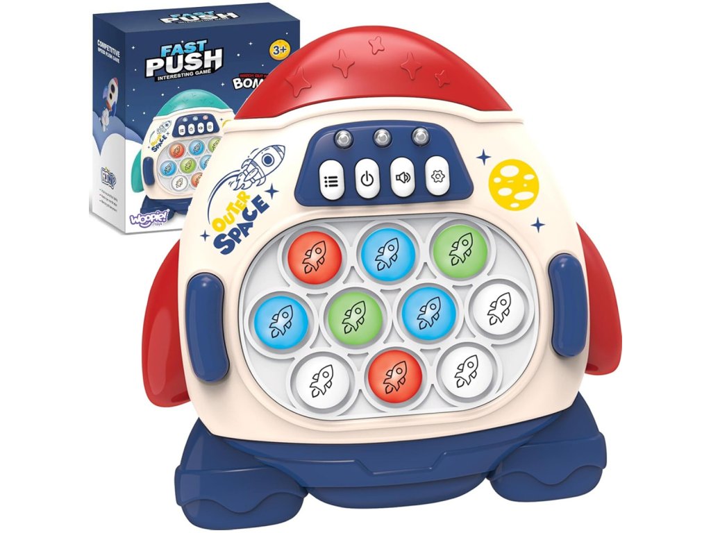 HraPOP IT Raketa je antistresová hračka, ktorá je vhodná už pre najmenších. Hra vydáva veselé zvuky, ktoré deti povzbudzujú k hre a robia hru zaujímavejšou. Hračka je malá, takže ju možno ľahko vziať so sebou. Pop Itzábava pre deti a dospelýchhra má veľký úspech. Rozvíja myseľ, manuálne zručnosti, koordináciu oko-ruka, trénuje postreh a pomáha bojovať proti stresu.