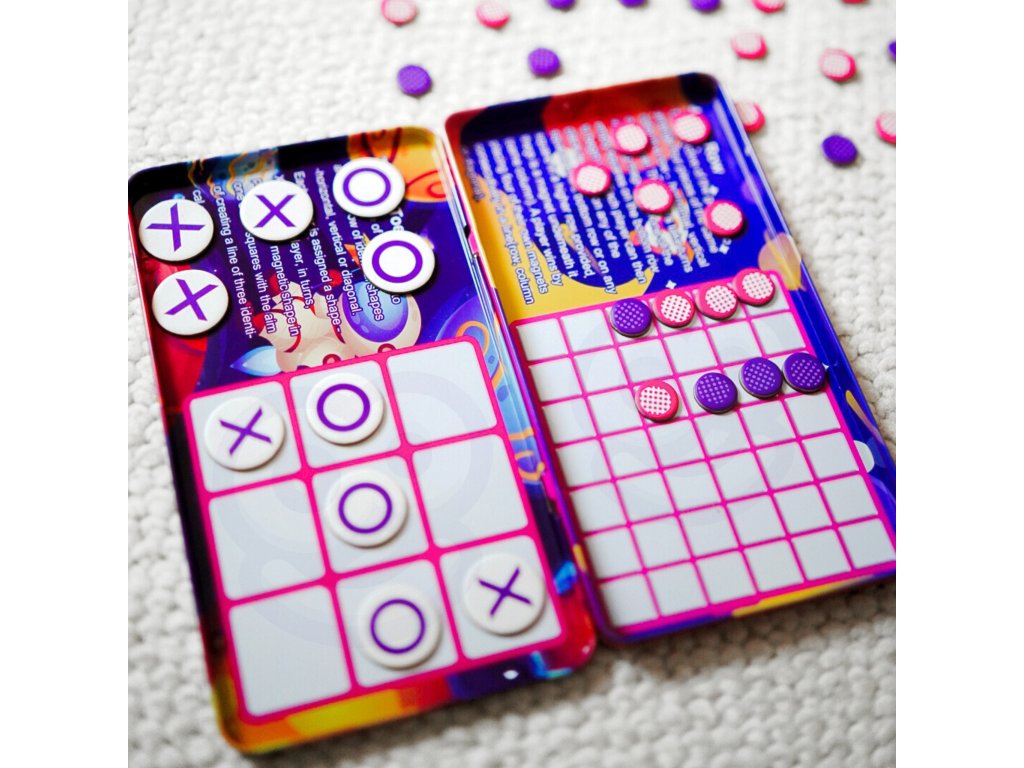 Klasická hra Tic-tac-toe v cestovnej verzii. Hráči sa striedajú v označovaní políčok a snažia sa obsadiť tri políčka v rade a zároveň zabrániť súperovi urobiť to isté. Políčko môže obsadiť len jeden hráč a v priebehu hry sa jeho majiteľ nemení.