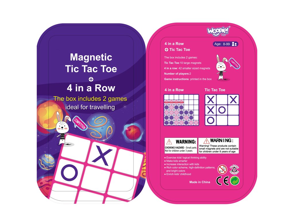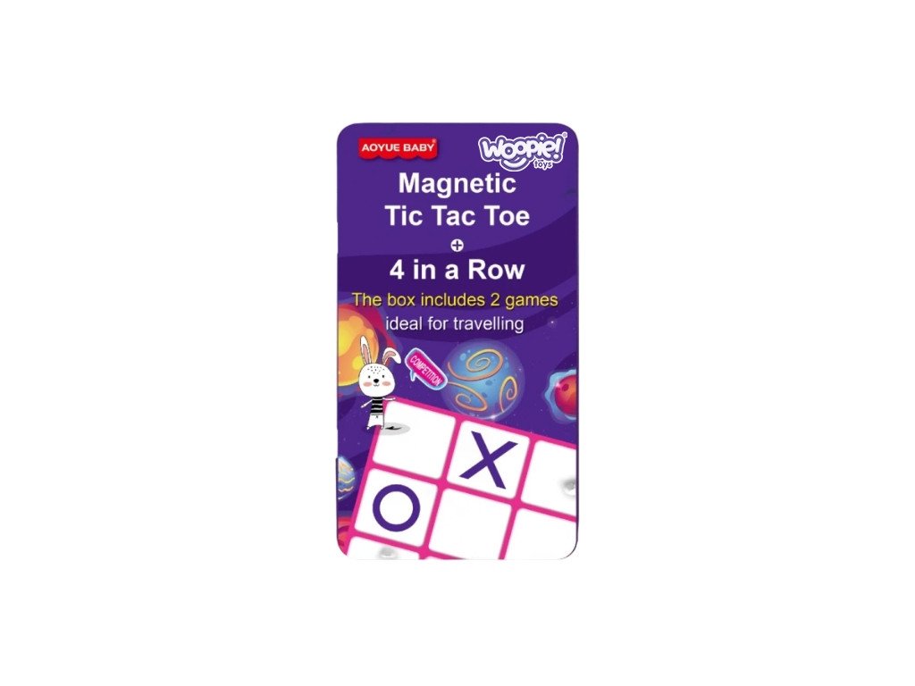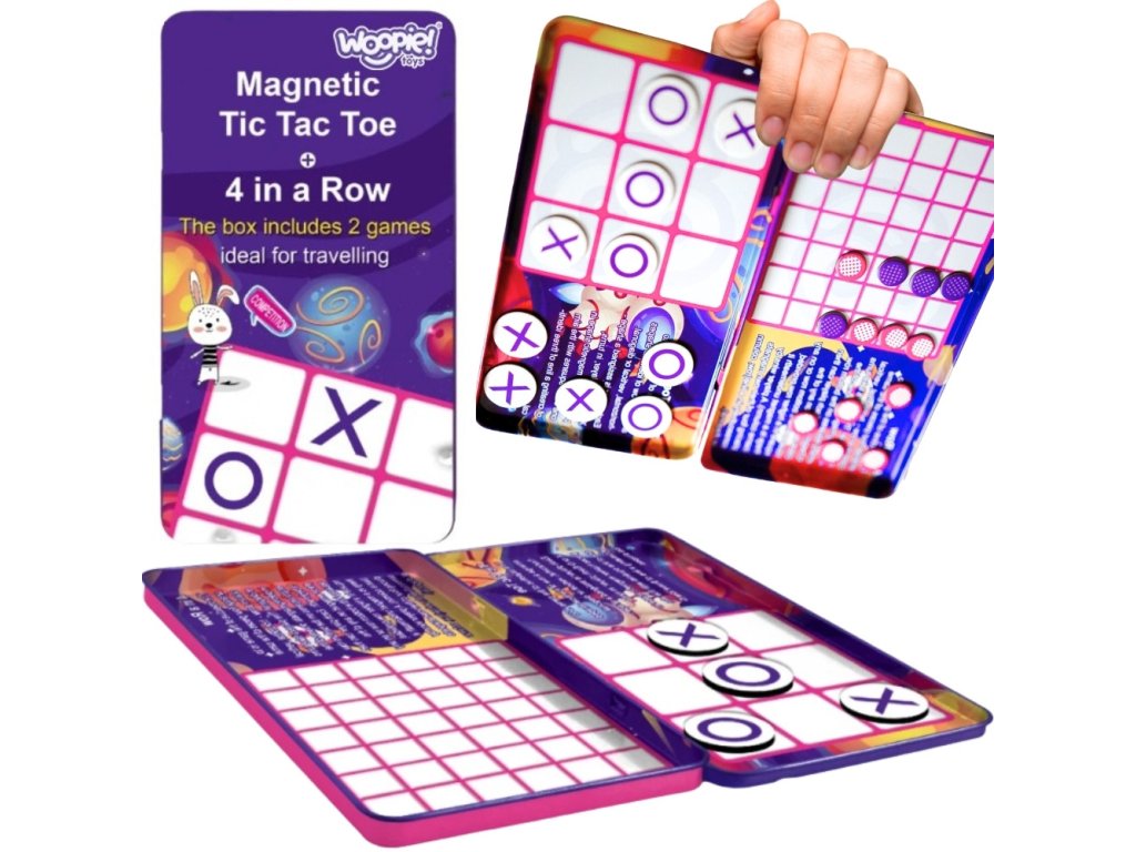 Kruh a kríž od spoločnostiWoopieZaujímavá ponuka pre ľudí, ktorí veľa cestujú. Séria magnetických hier v miniatúrnom formáte, ktorý sa zmestí do každej kabelky. Hra váži veľmi málo, takže ju máte vždy po ruke. Hru možno používať pri čakaní na návštevu lekára alebo počas dlhej cesty autom či lietadlom. Kovová krabička slúži ako hracia doska, vďaka čomu je veľkosť hry minimálna.
