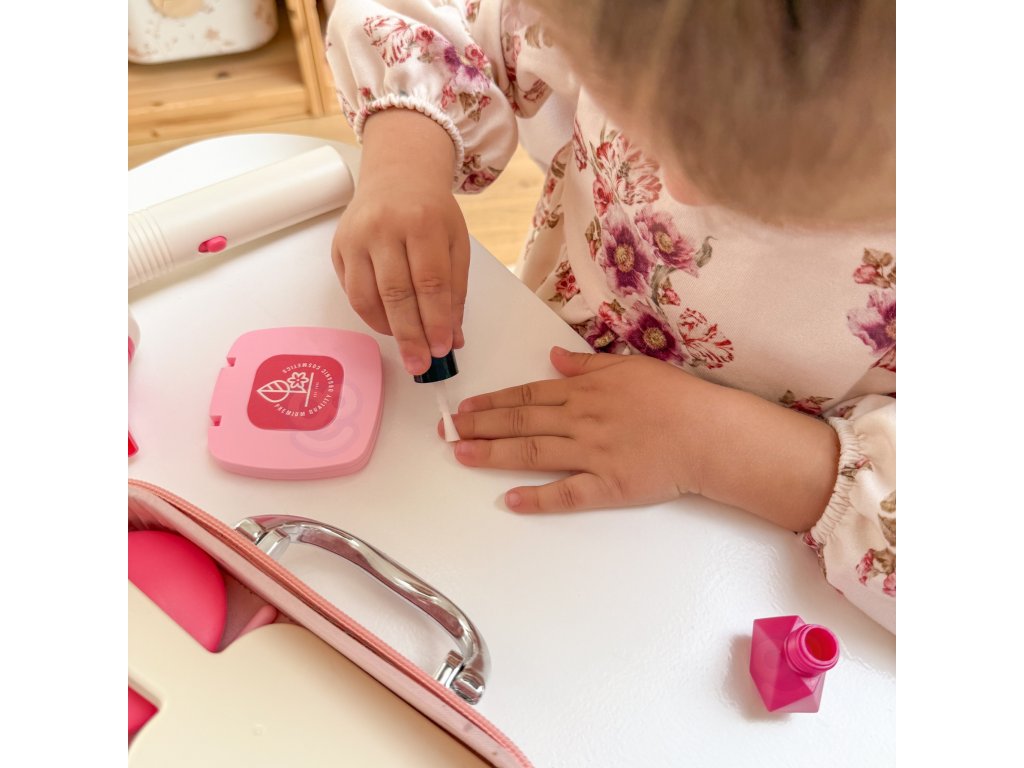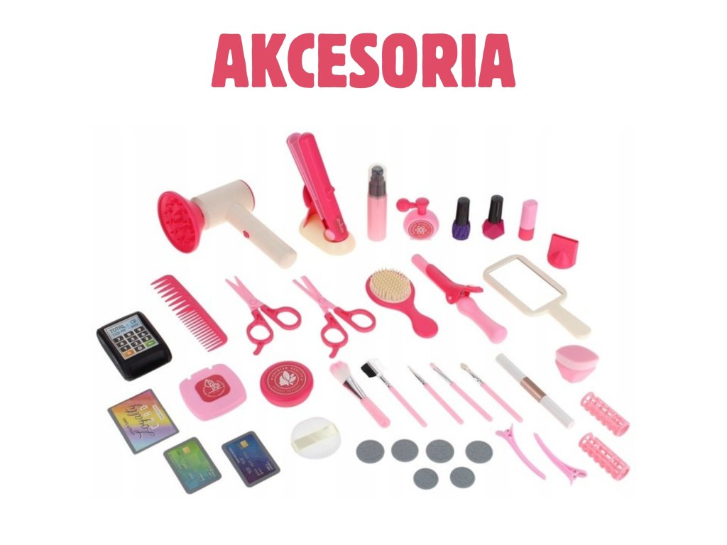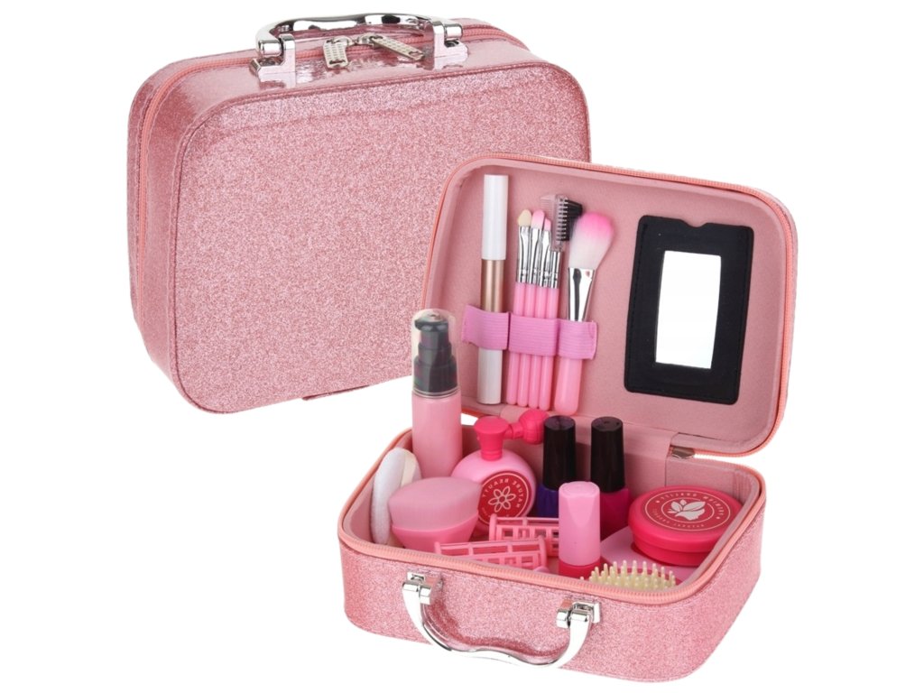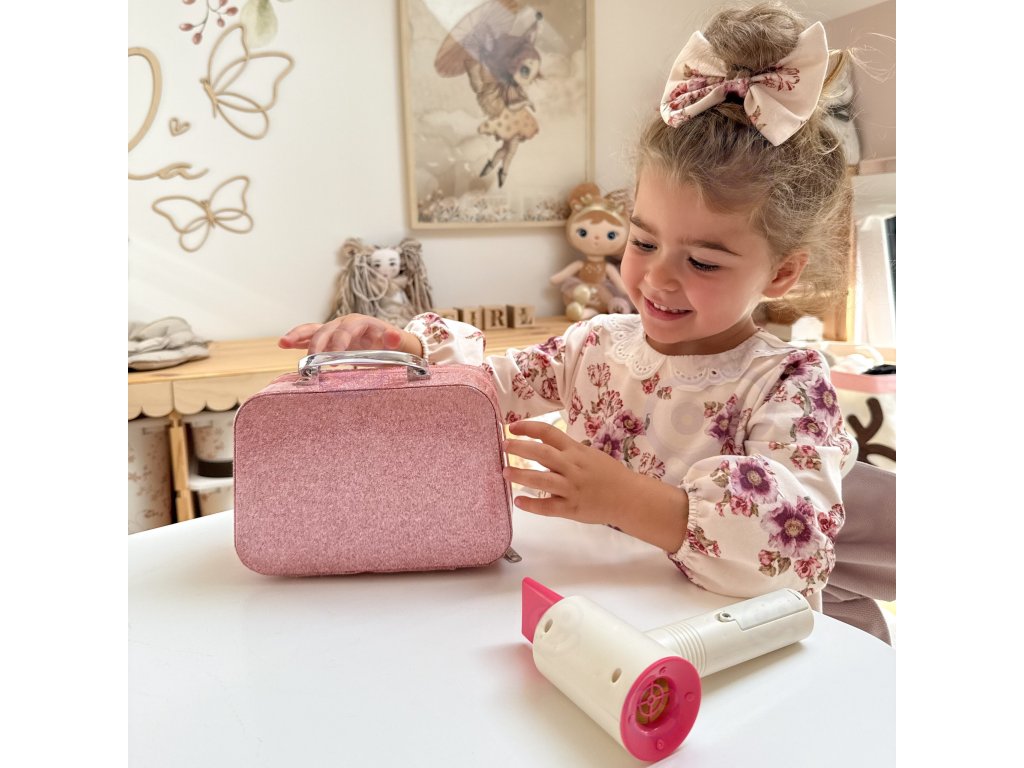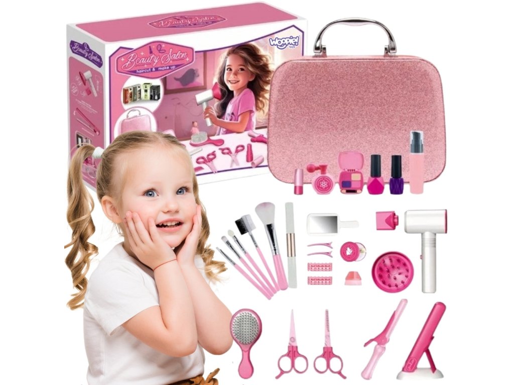 Súprava kozmetického salónu od značkyWoopie je ideálny pre všetkých malých milovníkov stylingu, účesov a líčenia. Bohatý na až 43 prvkov, táto súprava poskytuje hodiny tvorivej hry a umožňuje vášmu dieťaťu cítiť sa ako v skutočnom kozmetickom salóne. Každý doplnok bol starostlivo navrhnutý s ohľadom na deti - súbezpečné, ľahké a pohodlné používanie a vyrobené zodolné materiály. Celok je zabalený vrozkošný ružový kufrík s trblietavým povrchomčo nielenže dodáva súprave pôvab, ale uľahčuje aj jej skladovanie a prenášanie. Je to ideálny darček, ktorý rozveselí každé dievčatko a podnieti jeho fantáziu.