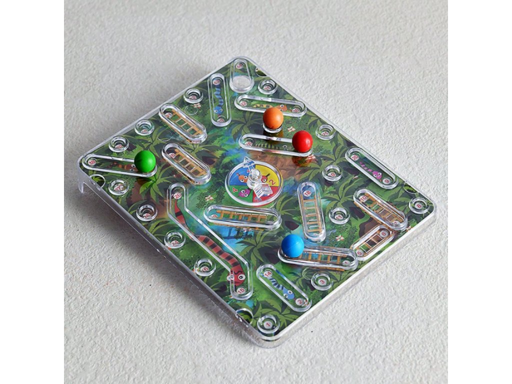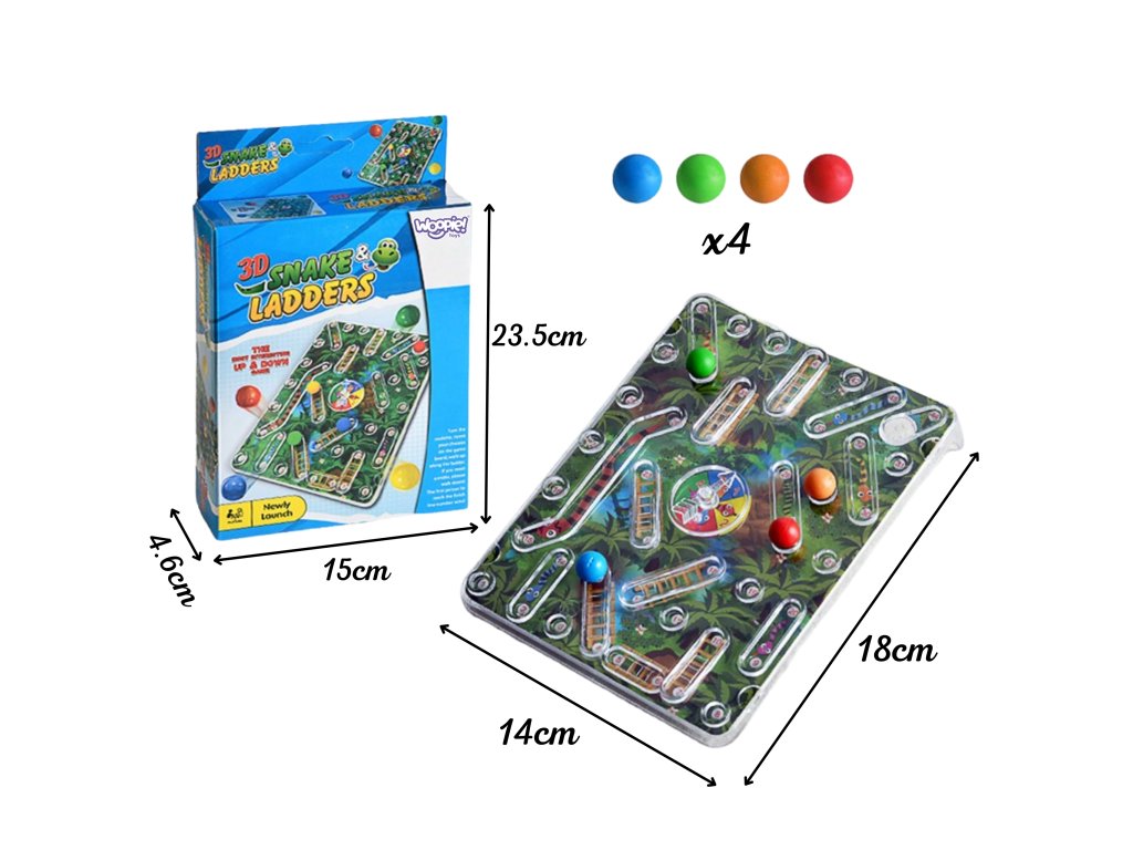 Objavte fascinujúci svet klasickej hry "Hady a rebríky" v modernej trojrozmernej verzii! Táto jedinečná hračka odWoopie kombinuje tradičnú hru s prvkami šikovnosti a presnosti a ponúka deťom nezabudnuteľné dobrodružstvo plné vzrušenia. Farebná hracia doska s motívom tropickej džungle s priehľadnými tunelmi, zabudovaným spinnerom a štyrmi farebnými guľôčkami poskytuje hodiny fascinujúcej zábavy pre 2-4 hráčov.