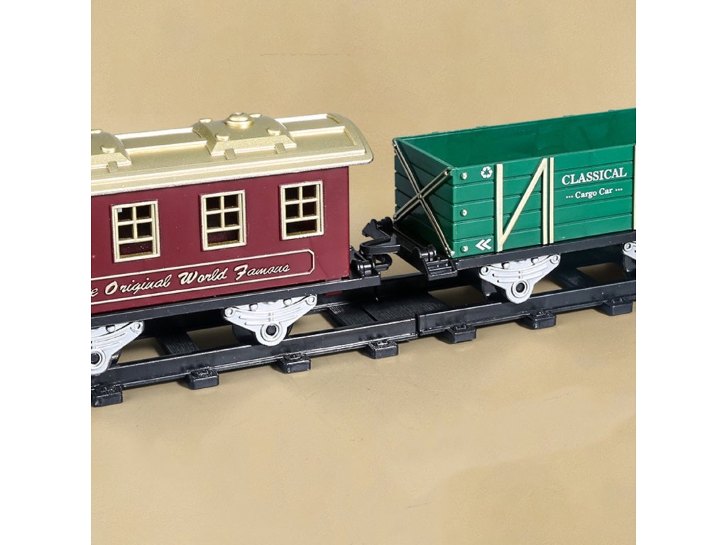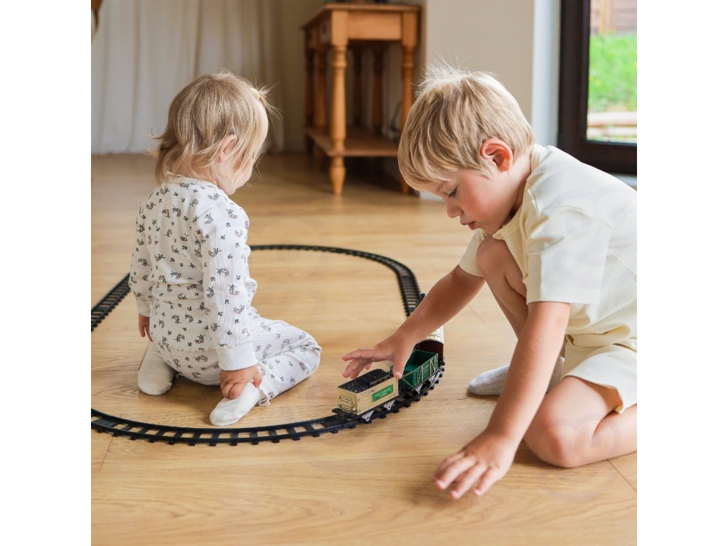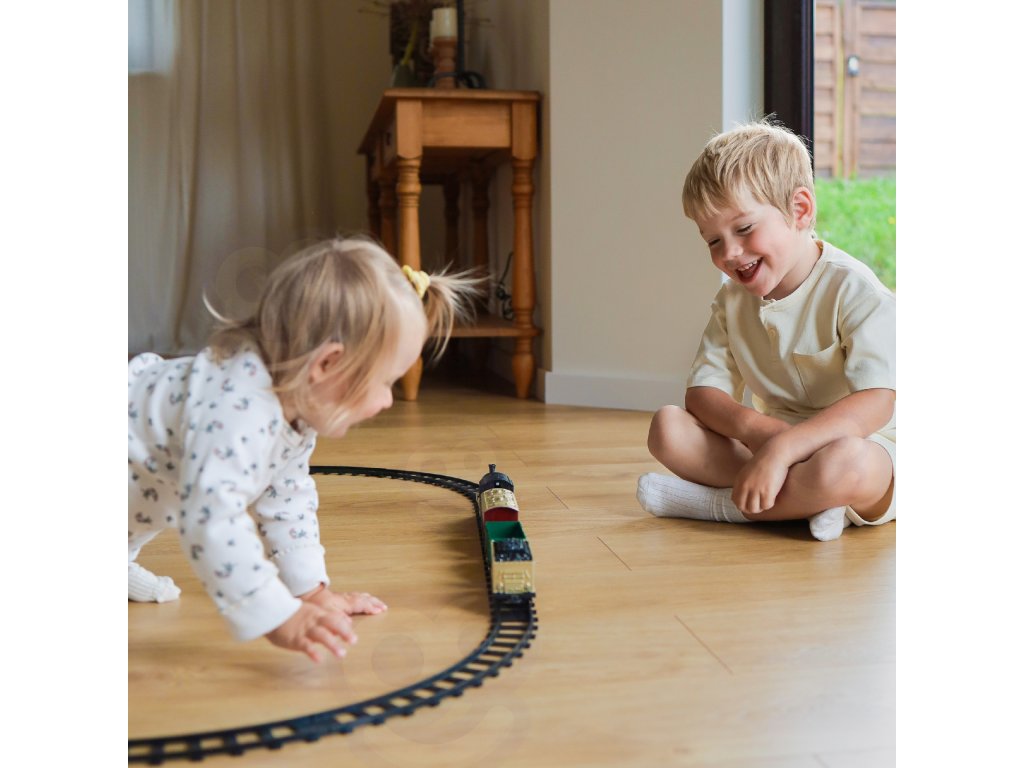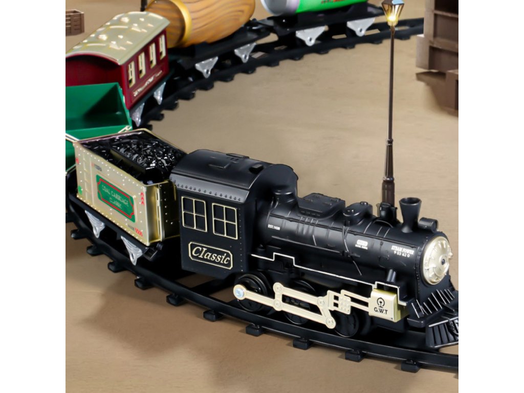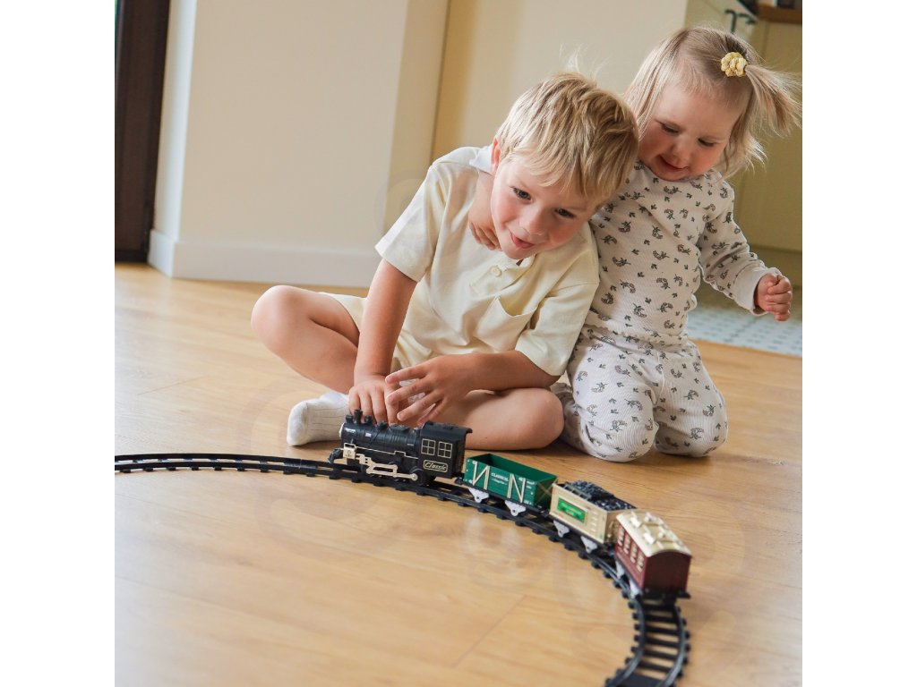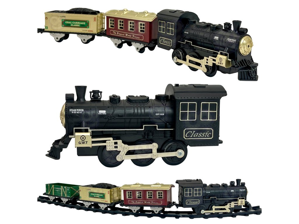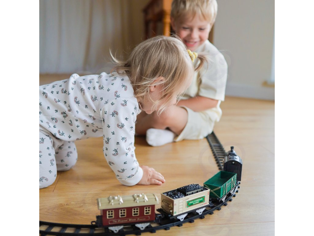 Preneste sa do sveta nezabudnuteľných ciest s klasickým parným vlakom od značkyWoopie! Táto nádherná súprava je nielen vernou kópiouparný vlakale aj zdrojom nespočetných hodín tvorivej hry. Verná reprodukcia klasickej parnej lokomotívy a realistickésvetelné a zvukové efekty urobia z každej cesty nezabudnuteľné dobrodružstvo a ľahko zostaviteľné trate vám umožnia zostaviť si vlastné vzrušujúce trasy. Ideálne pre malých rušňovodičov a železničných nadšencov, ktorí chcú pocítiť čaro cestovania vlakom!