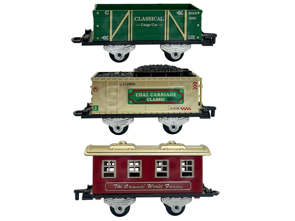 - - Sada obsahujeosobný vozeň a rôzne nákladné vozne (uhlie, škatuľa), ktoré spestrujú hru o prepravu