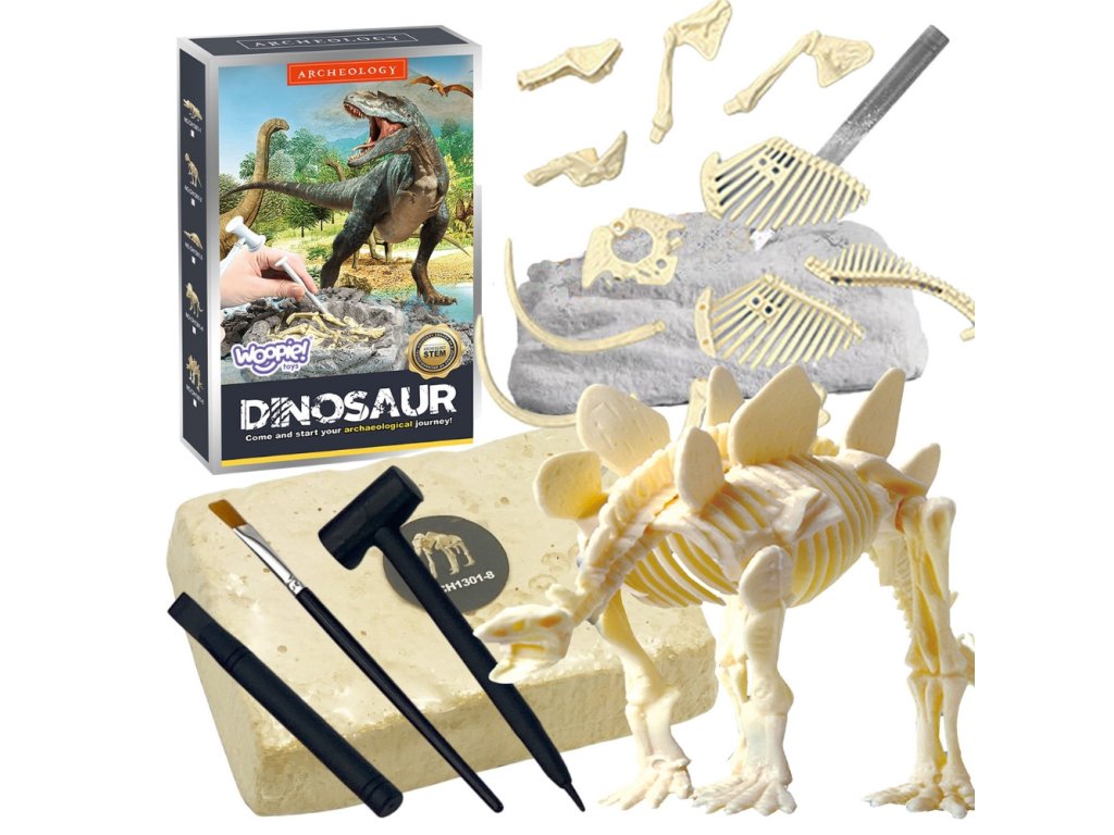 Sada fosílií stegosauraod značkyWOOPIE je fantastický darček pre deti, ktoré sa zaujímajú o dinosaury. Hra spočíva vo vyťahovanískameneliny ipredloženiez nich dinosaurus.Sada vám umožní cítiť sa ako skutočný paleontológ,vykopávanie skamenelín a objavovanie dinosaurích kostí. Vďaka priloženým nástrojom na kopanie, ťukanie, kefovanie a skladanie môžu deti stráviťmnoho hodín vzdelávacej zábavy, inšpirovať sa prírodnými vedami a rozvíjať svoje praktické zručnosti a myslenie. Perfektný darček pre chlapcov aj dievčatá!