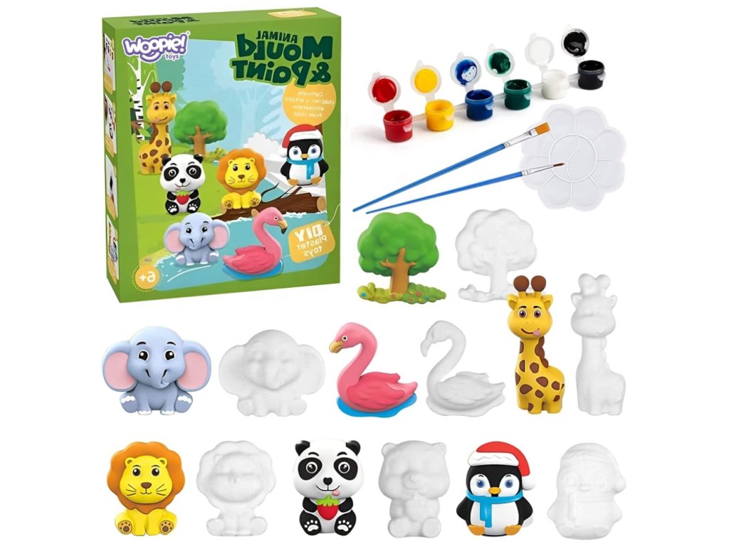 Vytvorte si vlastnú mini zoologickú záhradu pomocou tejto sadyDIY zvieracie formy a farby od značkyWOOPIE! Táto jedinečná výtvarná súprava umožňuje dieťaťu odlievať a maľovať rozkošné sadrové zvieratká - skvelá zábava a rozvoj v jednom. Ideálne pre deti od 6 rokov, ktoré rady tvoria, maľujú a experimentujú s farbami!