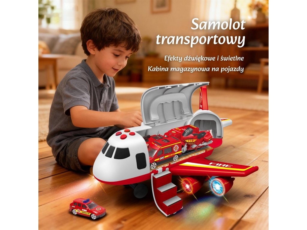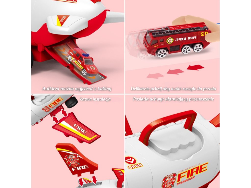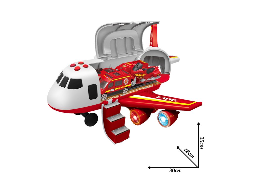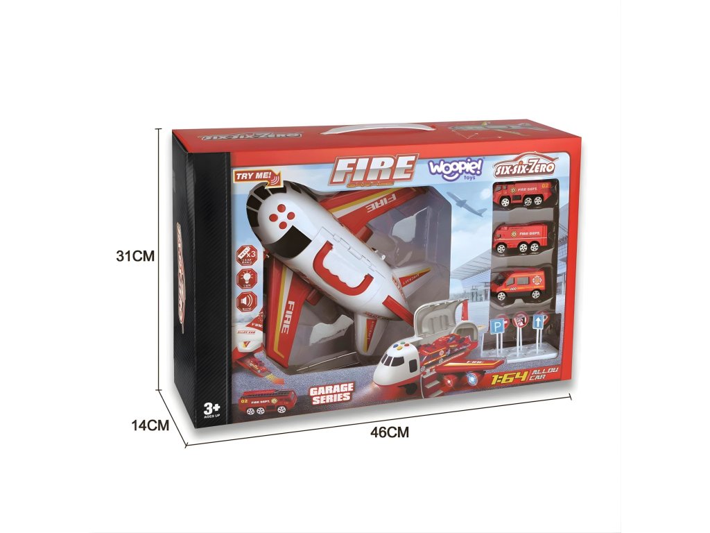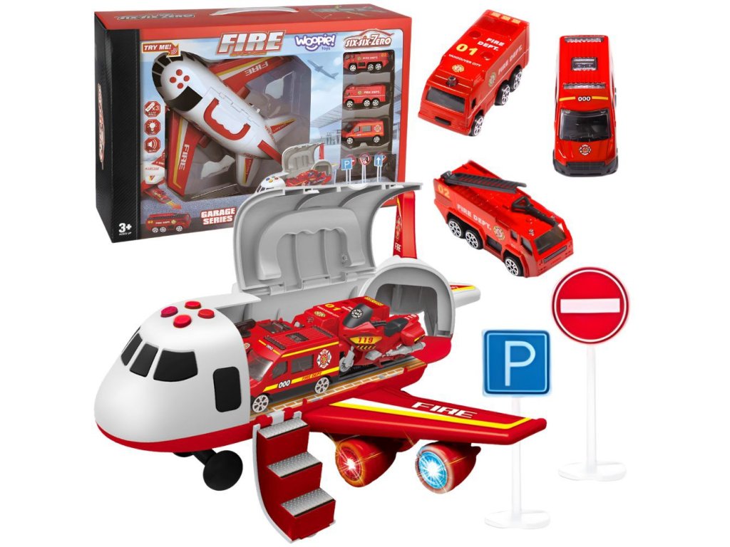 Preskúmajte stránku transportér - lietadlo hasič zo značkyWOOPIE!ktorá vaše dieťa vezme na vzrušujúcu záchrannú misiu! V priestrannom trupe lietadla sa nachádzajú tri hasičské autá a sada dopravných značiek, ktoré poskytujú úplnú voľnosť pri hre. Vďaka štyrom tlačidlám na aktiváciu realistických zvukov a blikajúcim LED svetlám hračka ožíva ako skutočné záchranné vybavenie. Otváracie dvere a spúšťacia rampa prispievajú k dynamickej akcii. Je to ideálny darček pre malého hrdinu od 3 rokov, ktorý rozvíja predstavivosť a učí zodpovednosti.