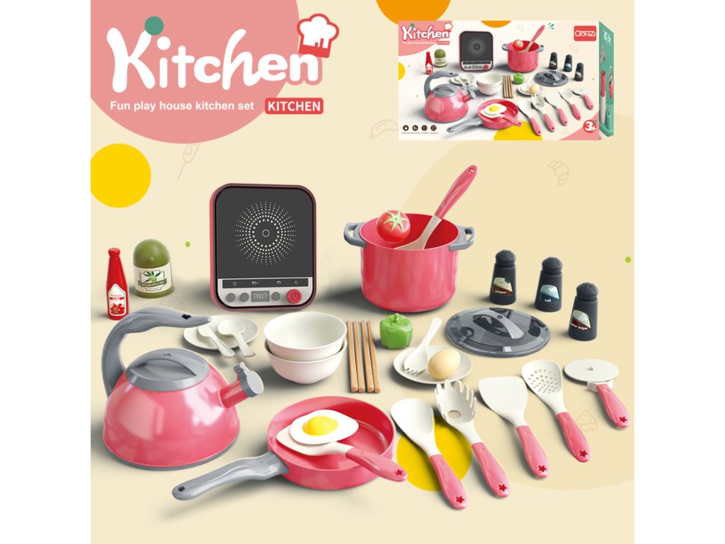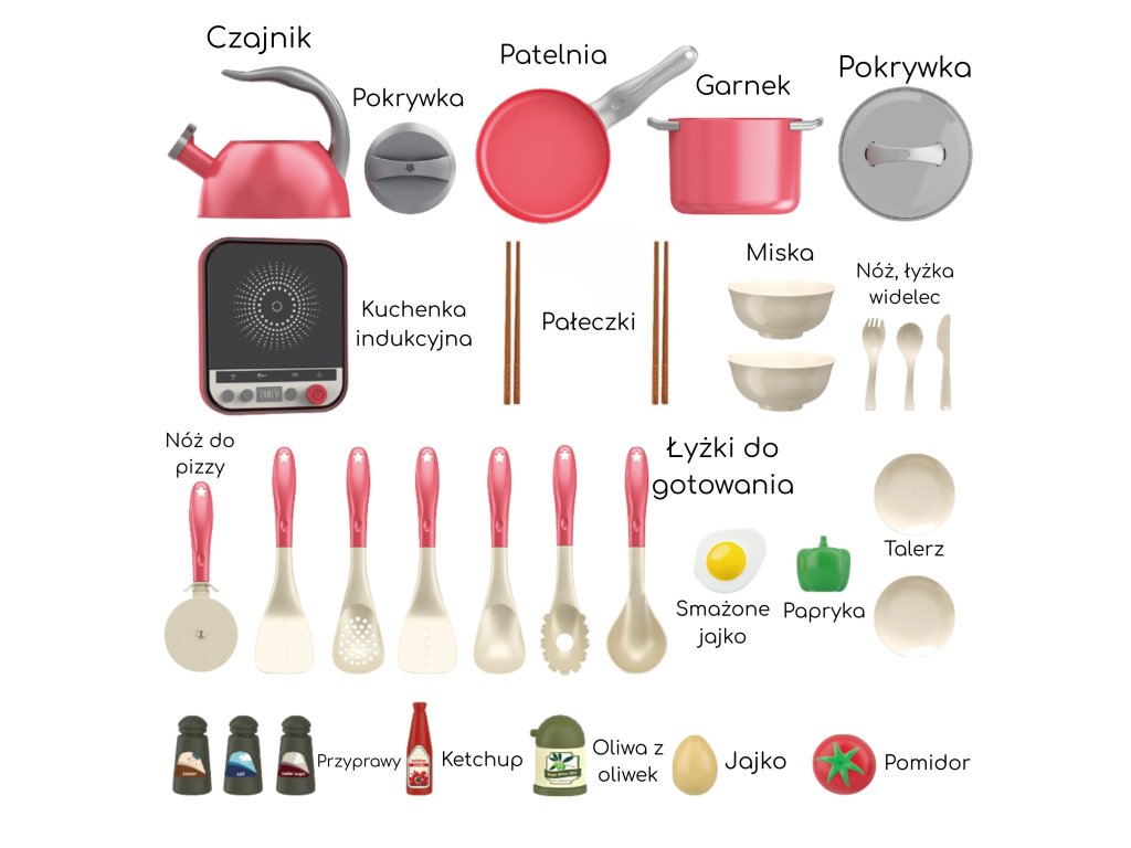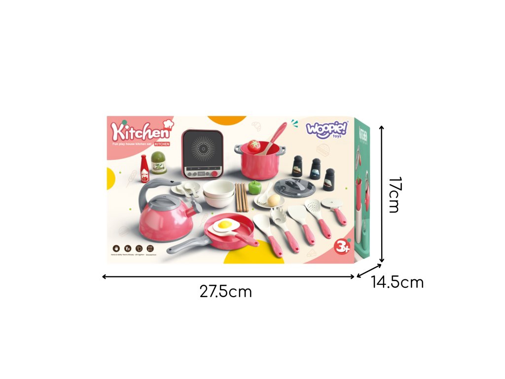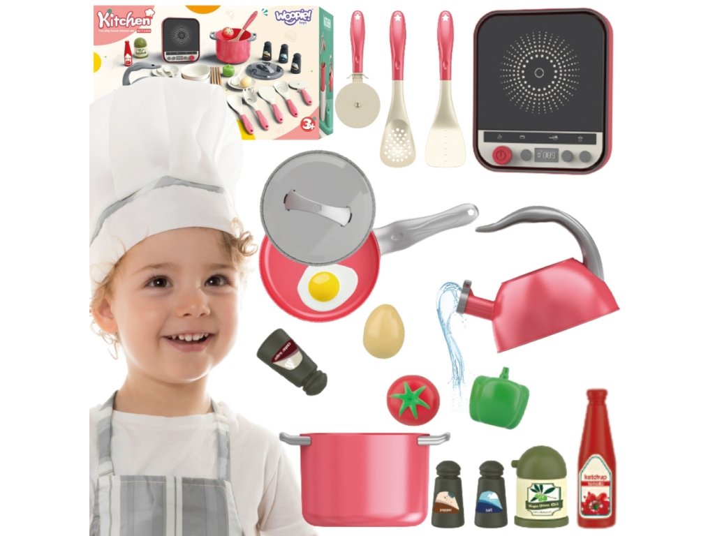 Táto komplexná hracia súprava do kuchyne od značkyWoopie je ideálnym darčekom pre každého malého kuchára! Hračka umožňuje deťomnapodobňovanie dospelých a hranie rolí, rozvíjanie ichtvorivosť, predstavivosť a manuálne zručnosti. Sada obsahuje všetko, čo potrebujete na prípravu jedla svojich snov.Sada obsahuje až30 prvkov, vrátane hrncov, panvice so smaženým vajíčkom, kanvice a dokoncaindukčná varná doska. Vďaka ďalším doplnkom, ako sú príbory, zelenina a koreniny, je hra mimoriadne realistická a pútavá. Je to skvelý spôsob, ako sa učiť hrou, rozvíjať sociálne zručnosti a tráviť čas s rodičmi.