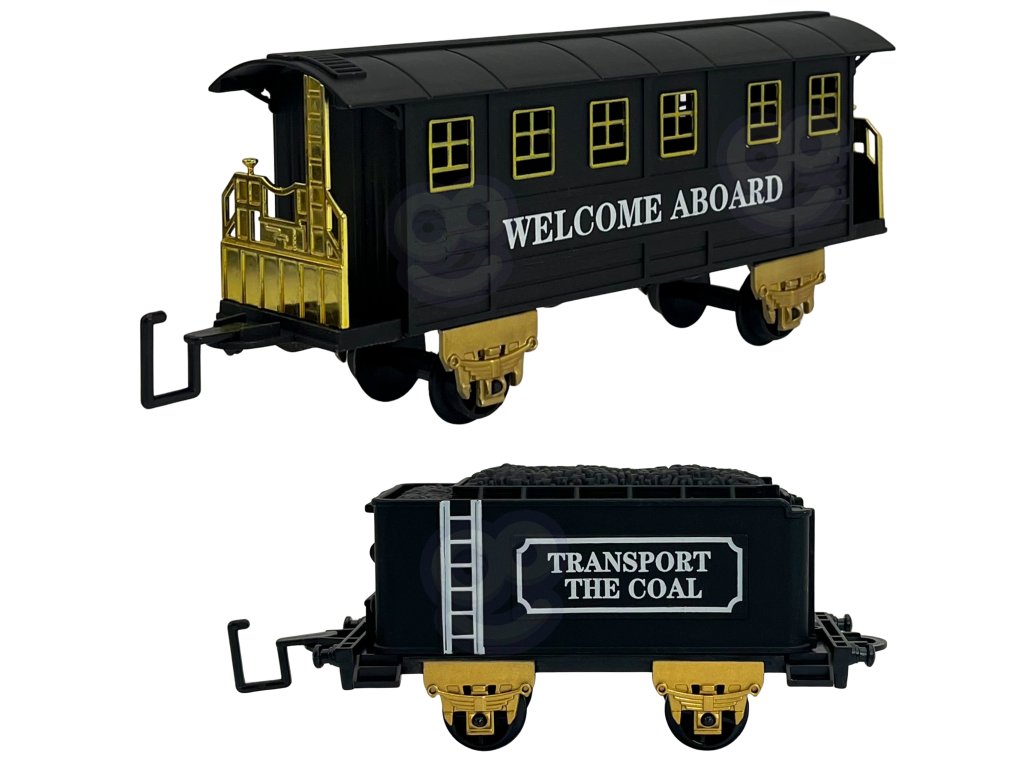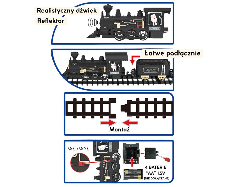- - Súprava verne reprodukuje klasicképarný vlak s lokomotívou a rôzne vozíky