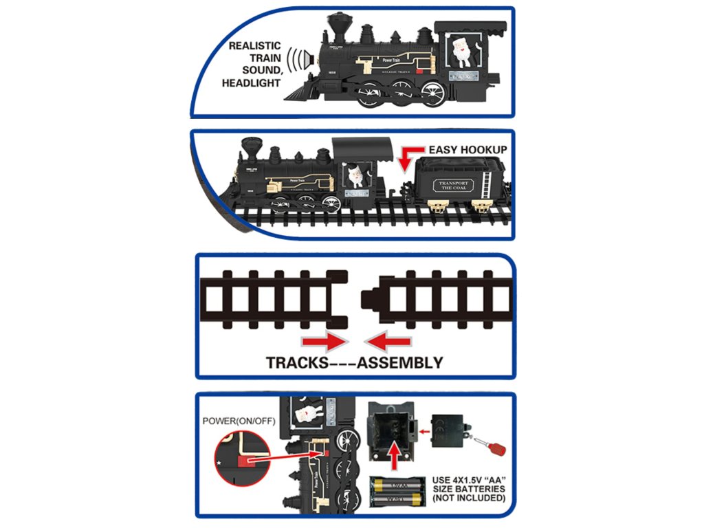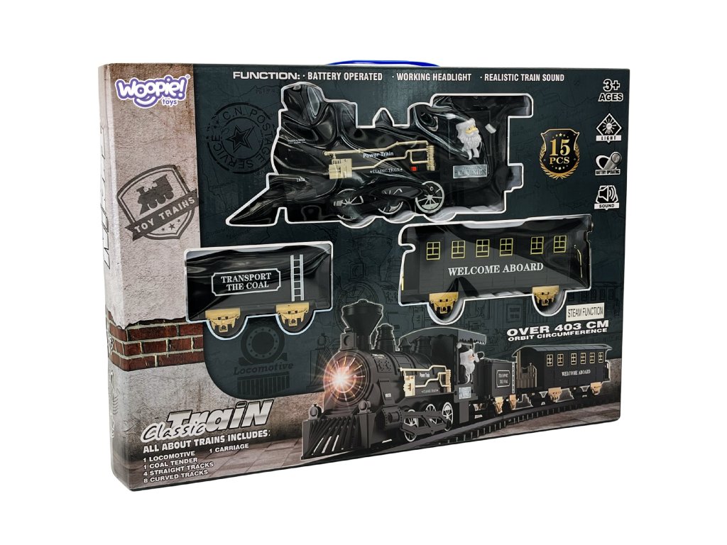 Vydajte sa na úžasnú železničnú cestu s naším parným vlakom od značkyWoopie! Táto jedinečná súprava je skutočnou lahôdkou pre každého malého milovníka vláčikov a ponúka nezabudnuteľný zážitok z jazdy.Lokomotíva svieti a vydáva realistické zvuky. Ľahko zostaviteľné koľajnice umožňujú vytvoriť pôsobivú dráhu dlhú viac ako 403 cm. Pripravte sa na hodiny pútavej, kreatívnej zábavy s týmto jedinečným vláčikom!