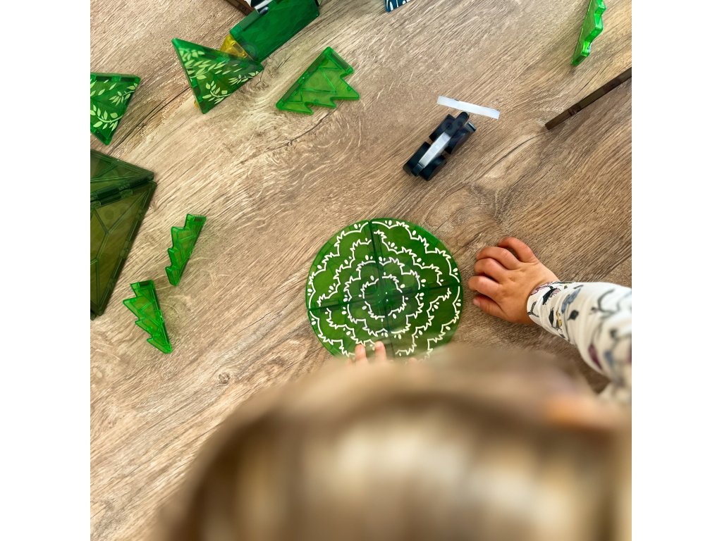 - - 45 magnetických dielikov rôznych tvarov a farieb vrátane vodopádu, oblúka, kríkov a stromov.