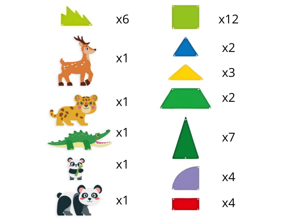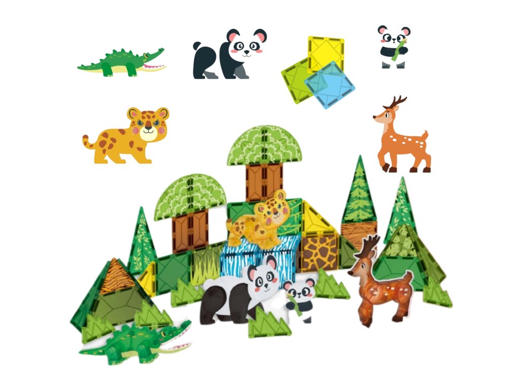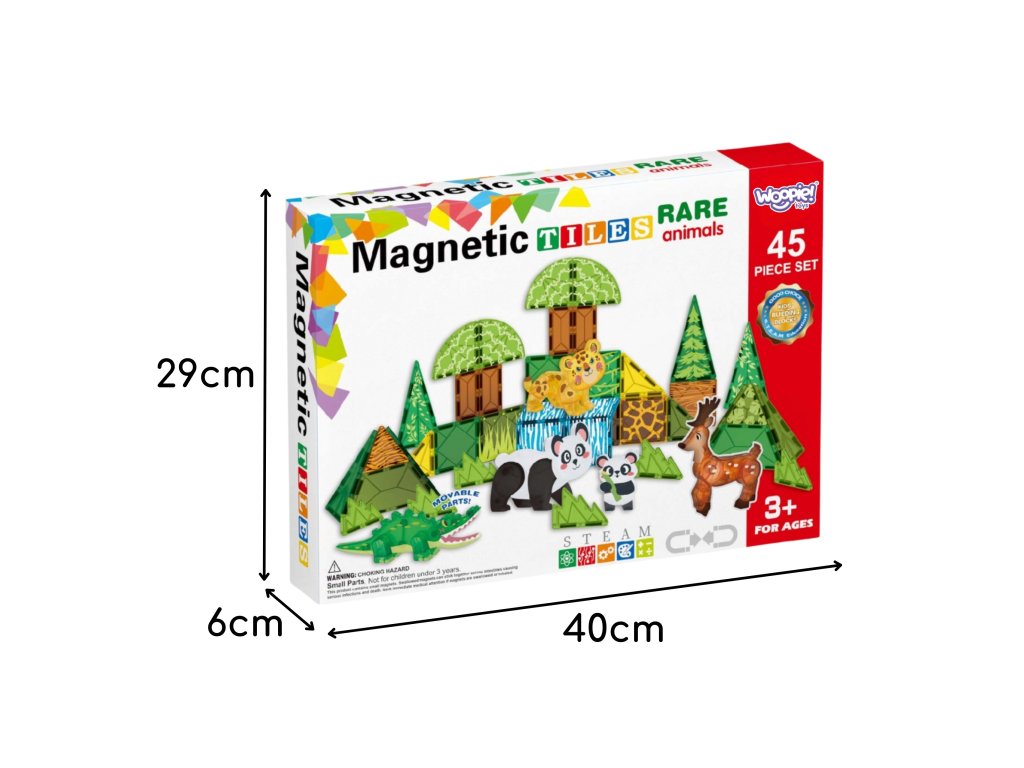 - - Zahrnuté45 prvkovvrátane magnetických dlaždíc a figúrok zvierat.